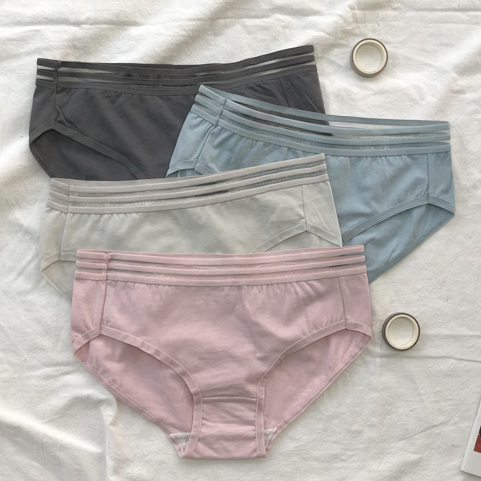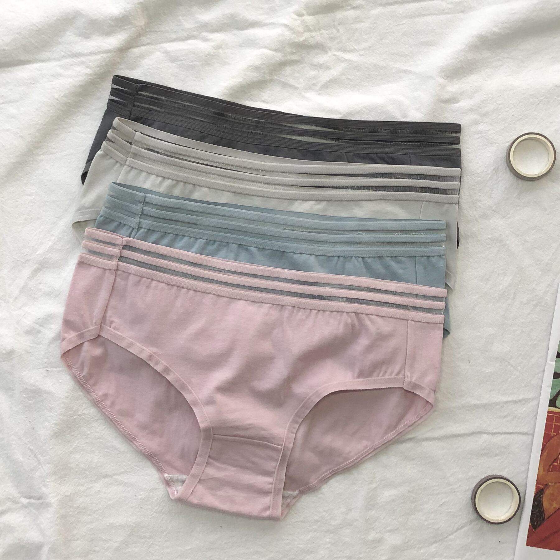 シックな新しいファッションのシンプルな下着の2020年夏バージョン女性の大学スタイルのミッドウエストの薄いブリーフ4パック YY-ファッション55280674705