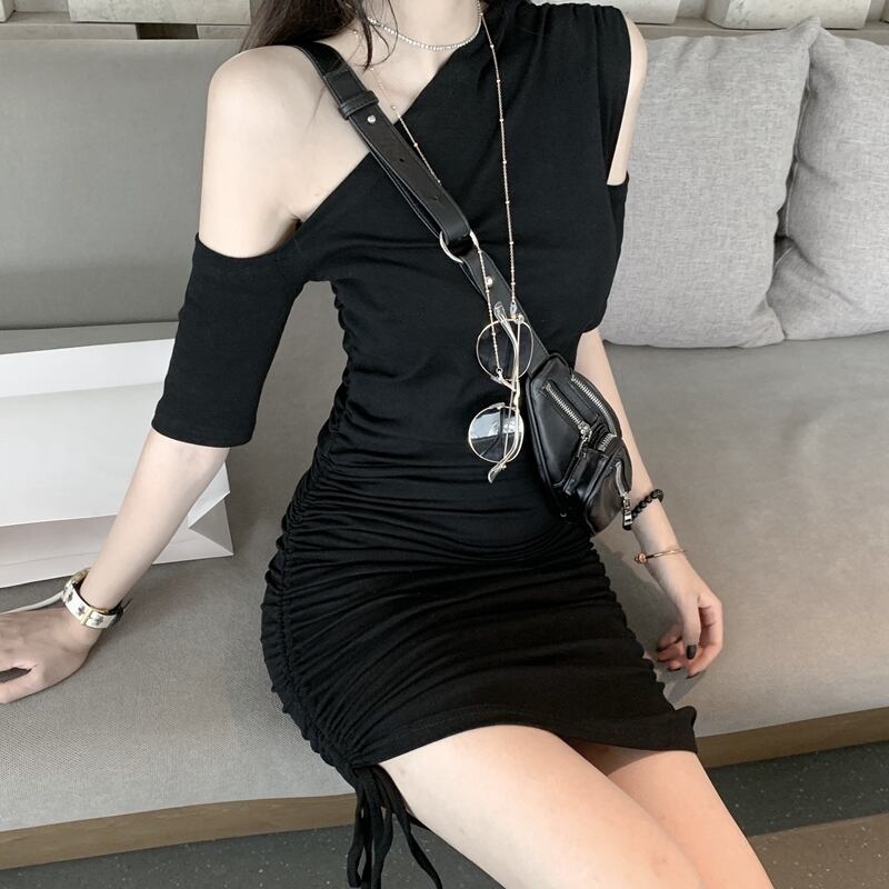 黒のストラップレスのセクシーなドレスの女性2020年夏の新しいスリムスリム巾着スカートレトロバッグヒップスカート YY-ファッション5895069656
