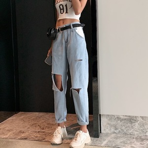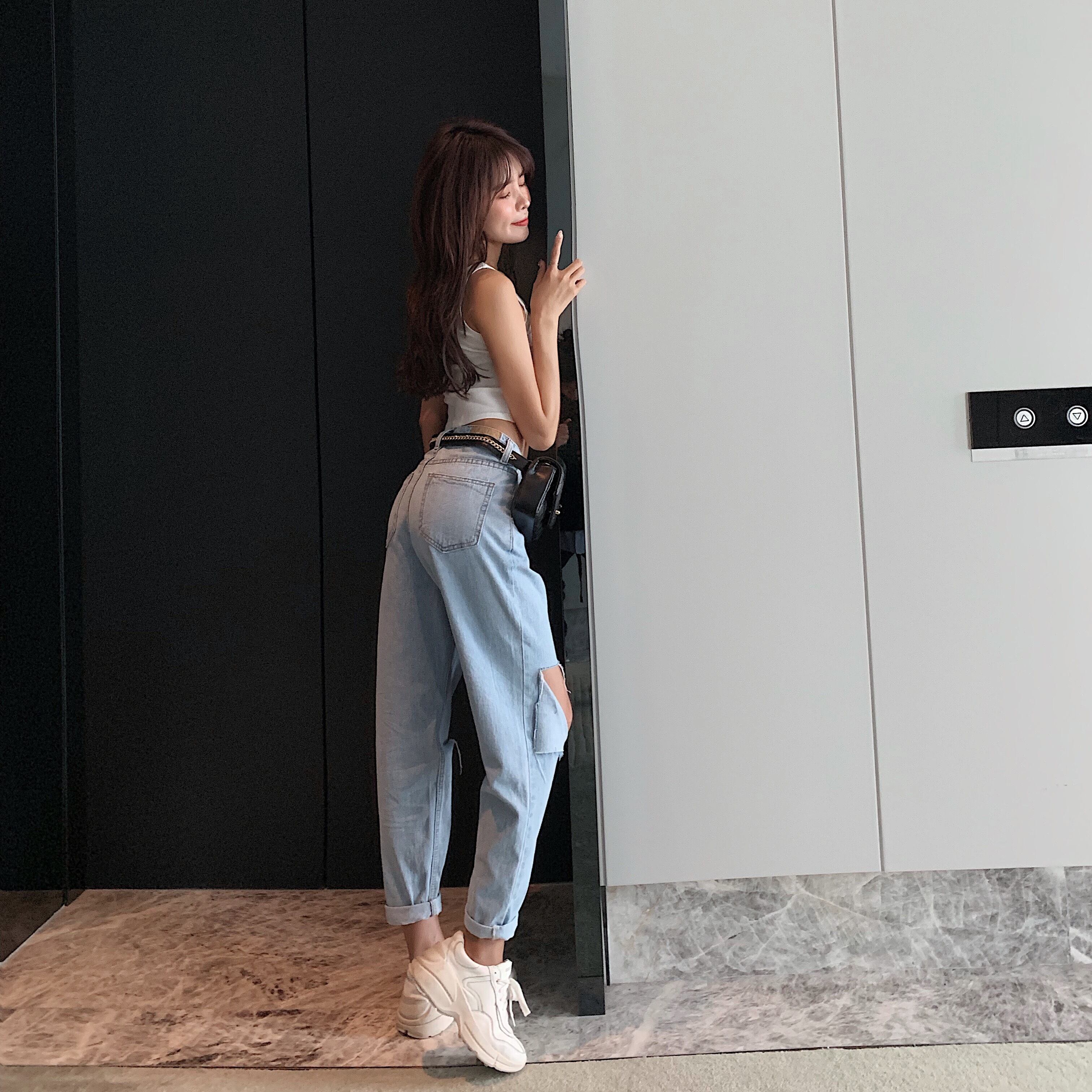 ヒョナスタイルパンツレディース2020年夏ワイルドハーレムパンツトレンドの新しいルーズホールハイウエストジーンズバージョン YY-ファッション55013166851