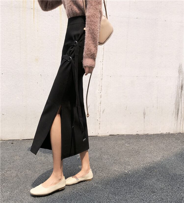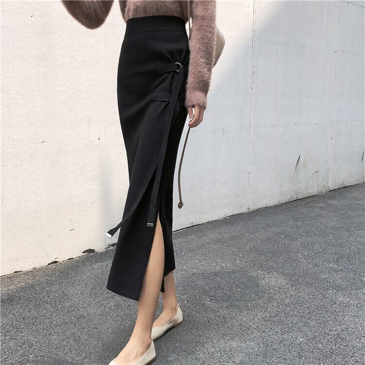 オールマッチスプリットニットスカート女性ミドル丈ハイウエストシンヒップAラインスカートの2020年夏新バージョン YY-ファッション27875719379