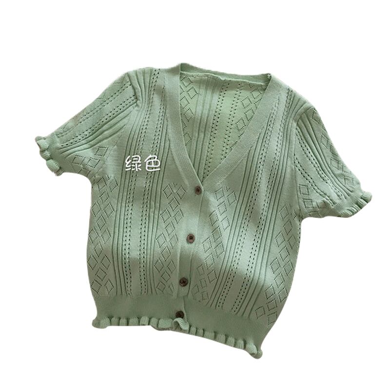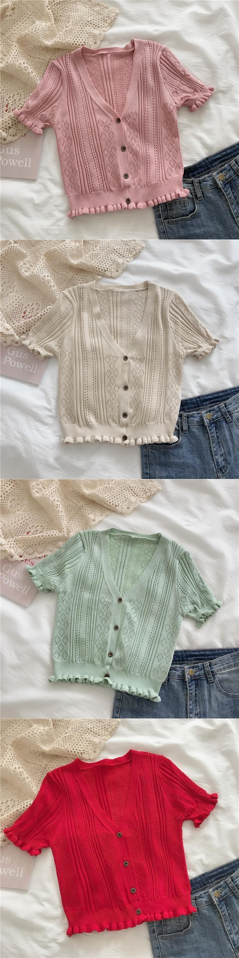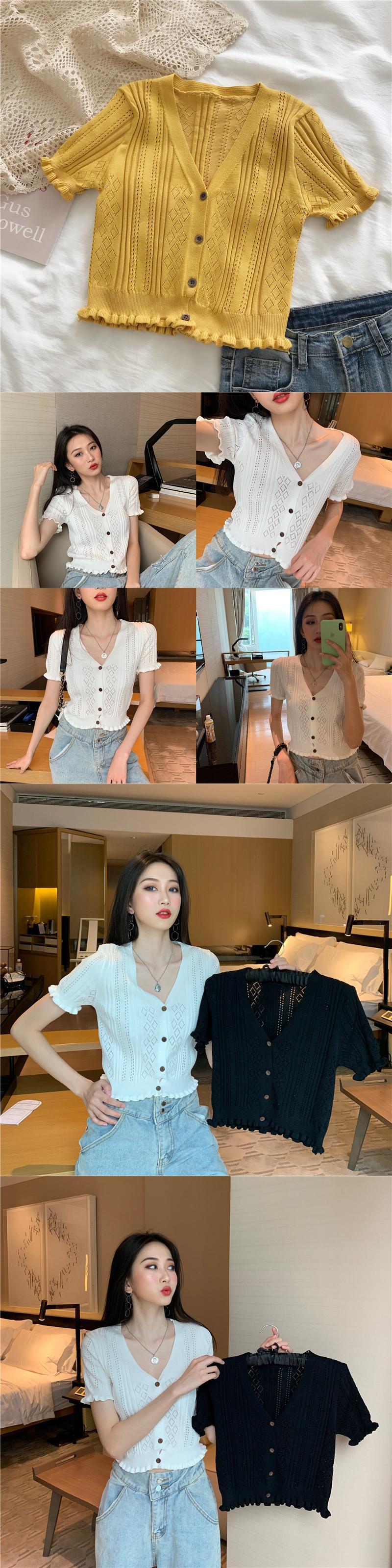 2020年バージョンの夏のVネック半袖ウエスタンスタイルブラウス、木製の耳、短く、小さく、薄く、ニットの中空ネットレッド YY-ファッション87377657829