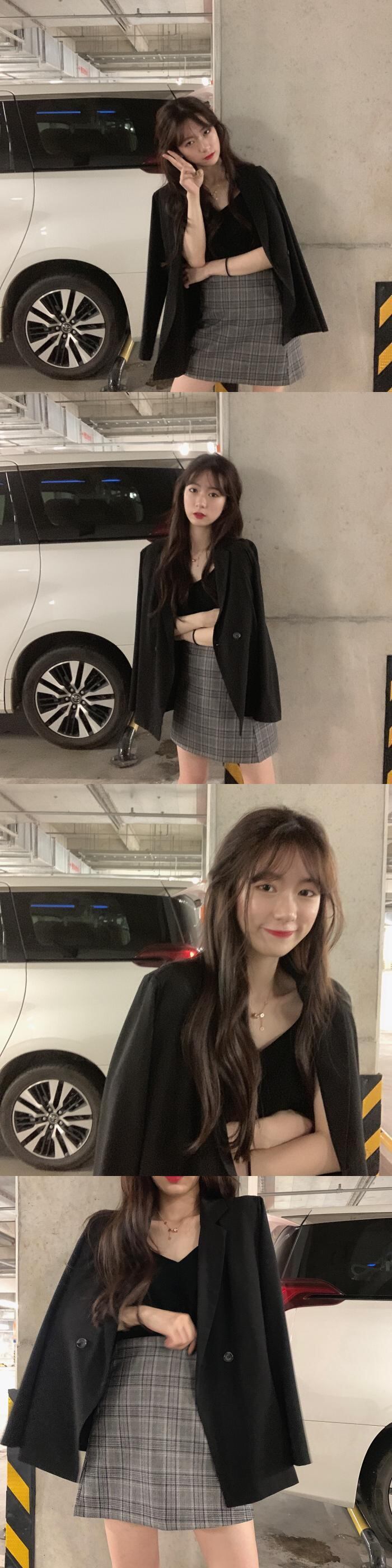 色:カーキ色のスーツ,黒いスーツ,アプリコットスリング,ブラックサスペンダー,カーキ色のスカート,黒スカート