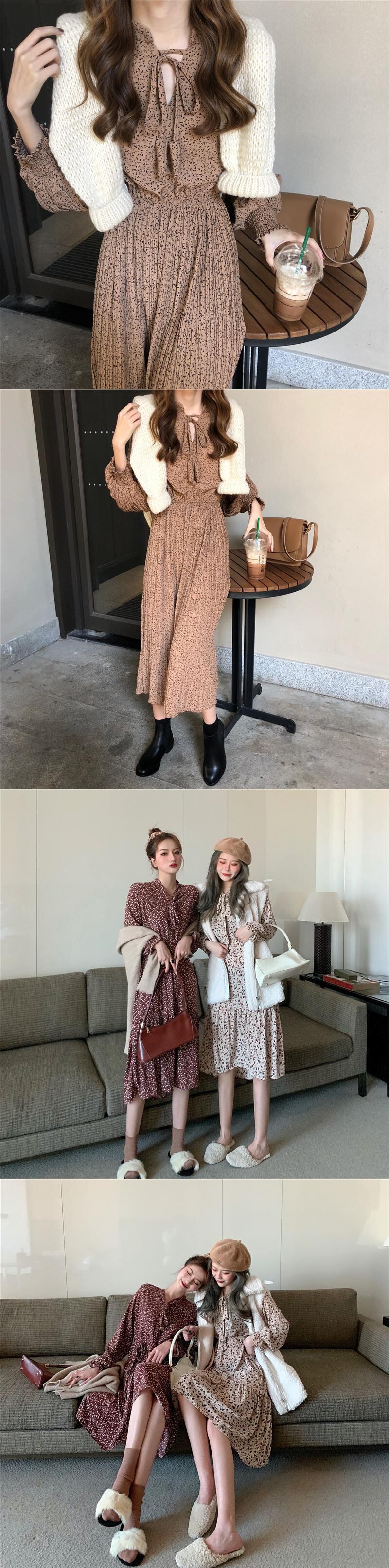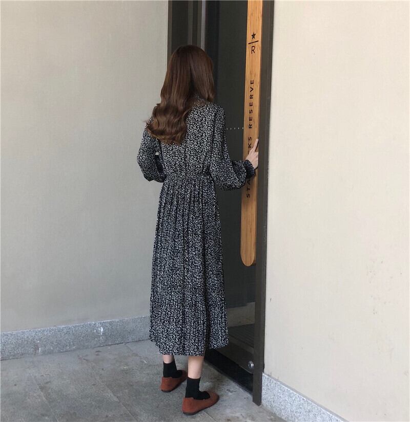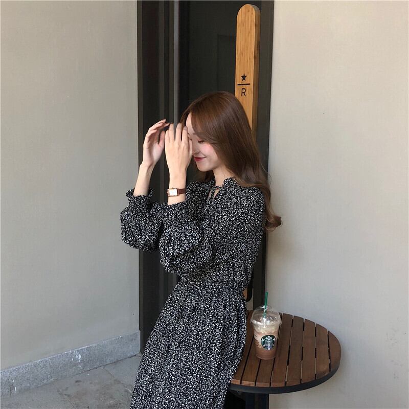 花柄長袖シフォンワンピース気質ミドル丈スタイル2020春秋トレンドカジュアルレトロベーススカート YY-ファッション35734351007