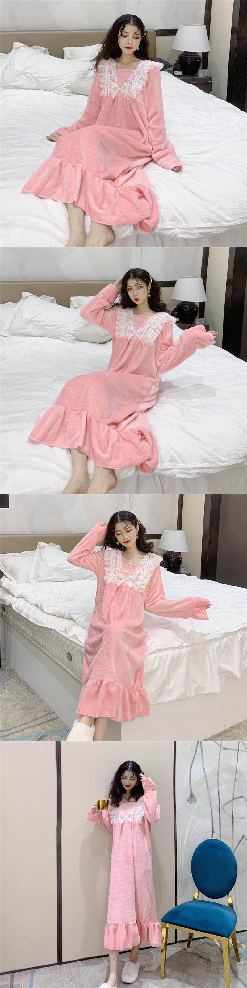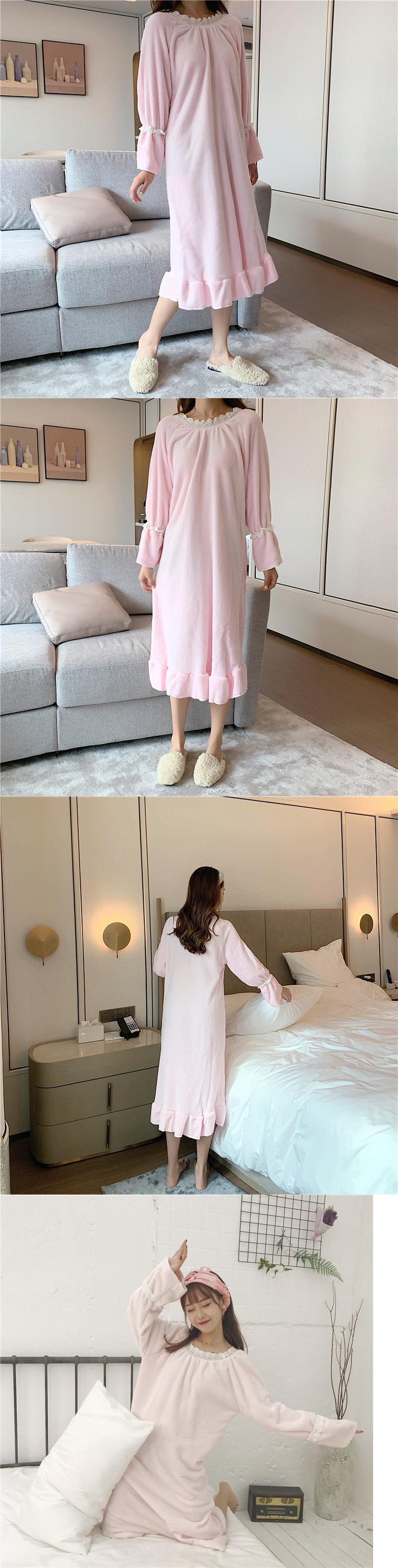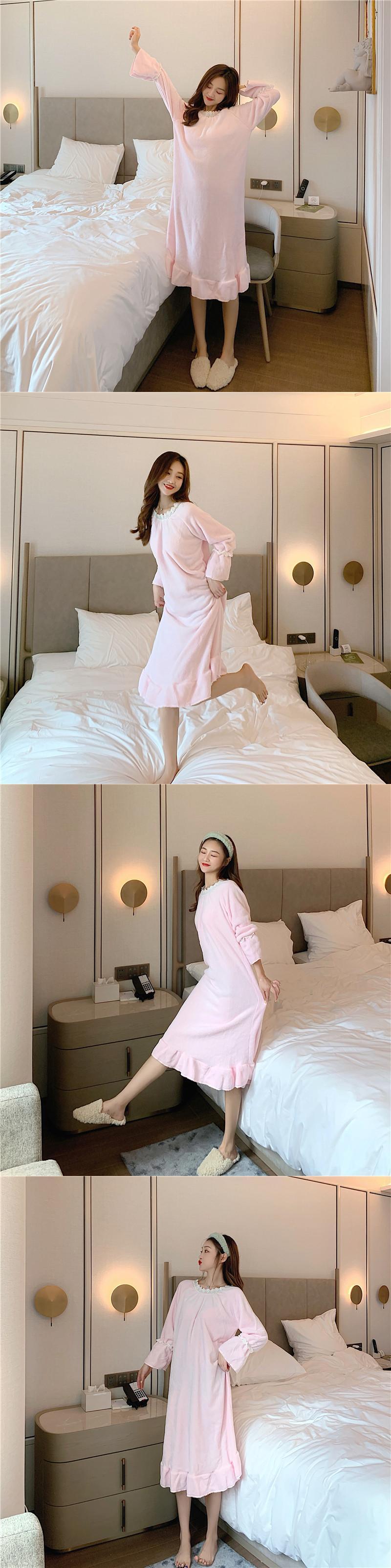 フランネルフリルネグリジェ2020春秋新作レディースホームウェア長袖ウォームドレス YY-ファッション76586230148
