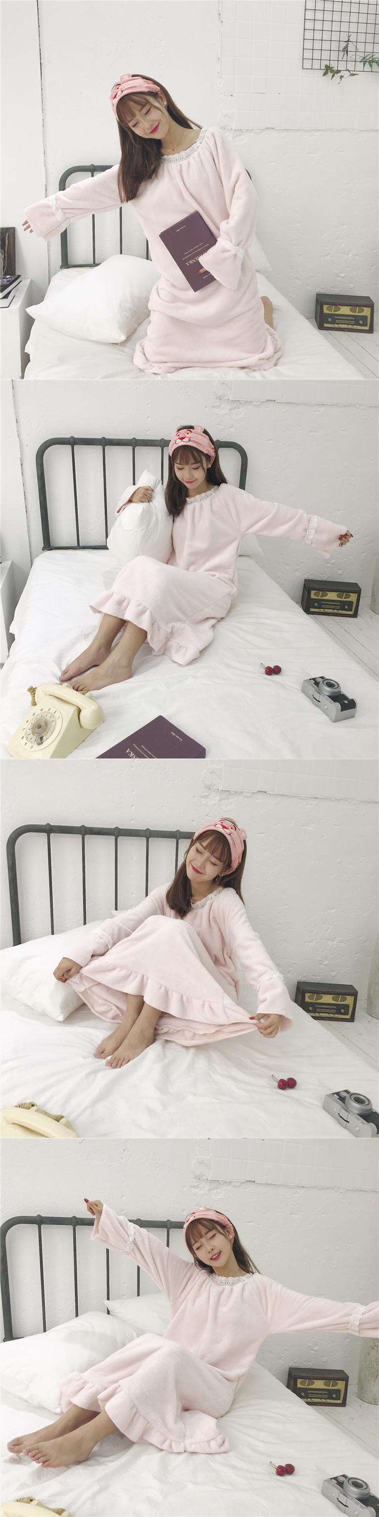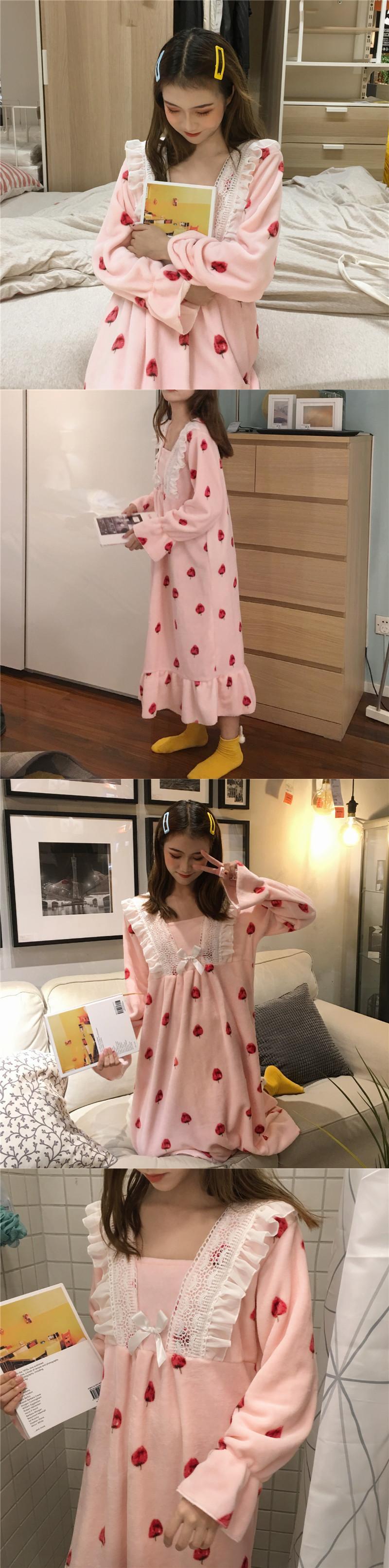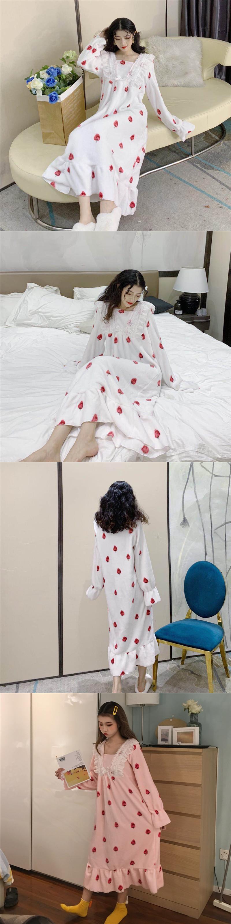 フランネルフリルネグリジェ2020春秋新作レディースホームウェア長袖ウォームドレス YY-ファッション76586230148