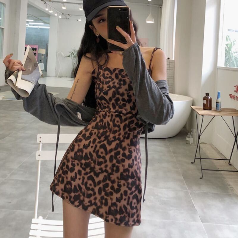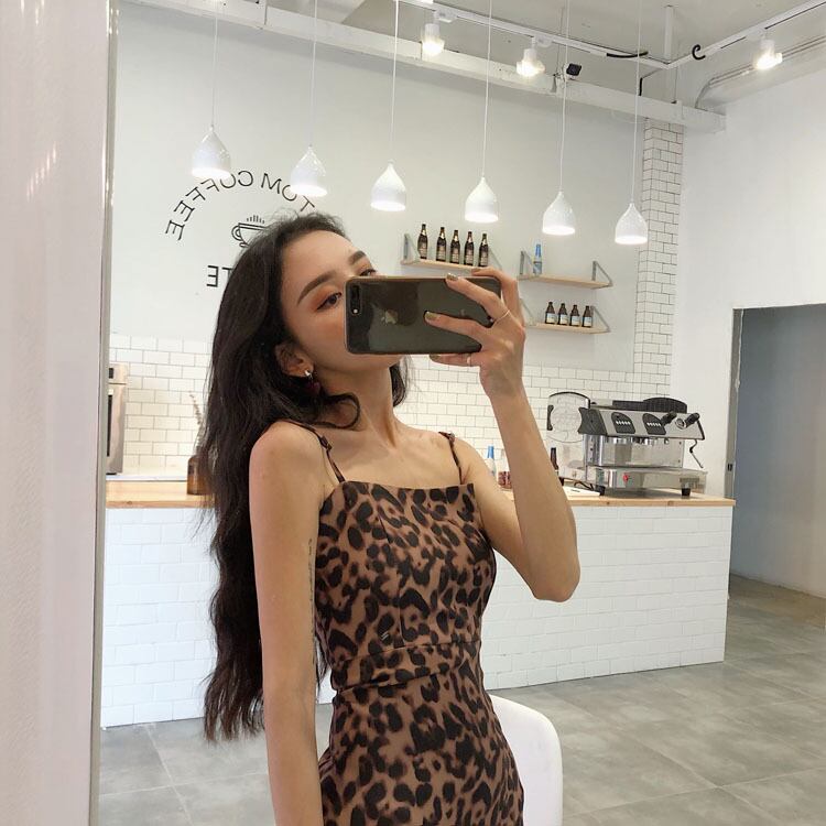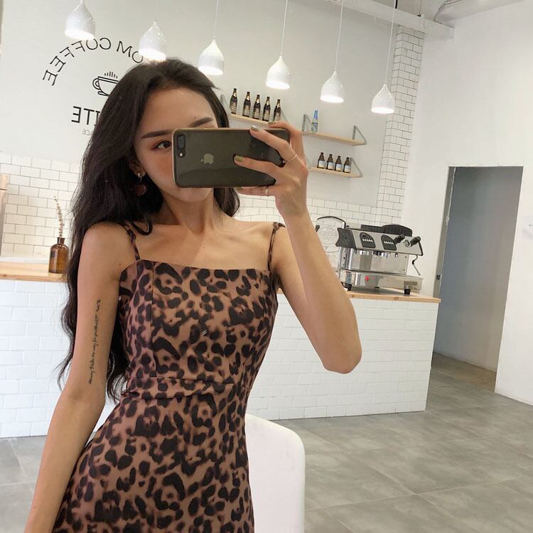 シックなファッションレトロスリムスリングハイウエストAラインスカート気質ヒョウストラップレスドレスの2020年初春バージョン YY-ファッション95640030842
