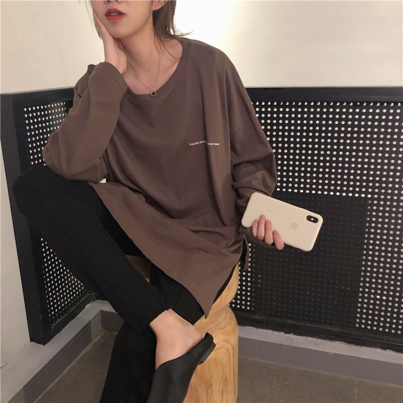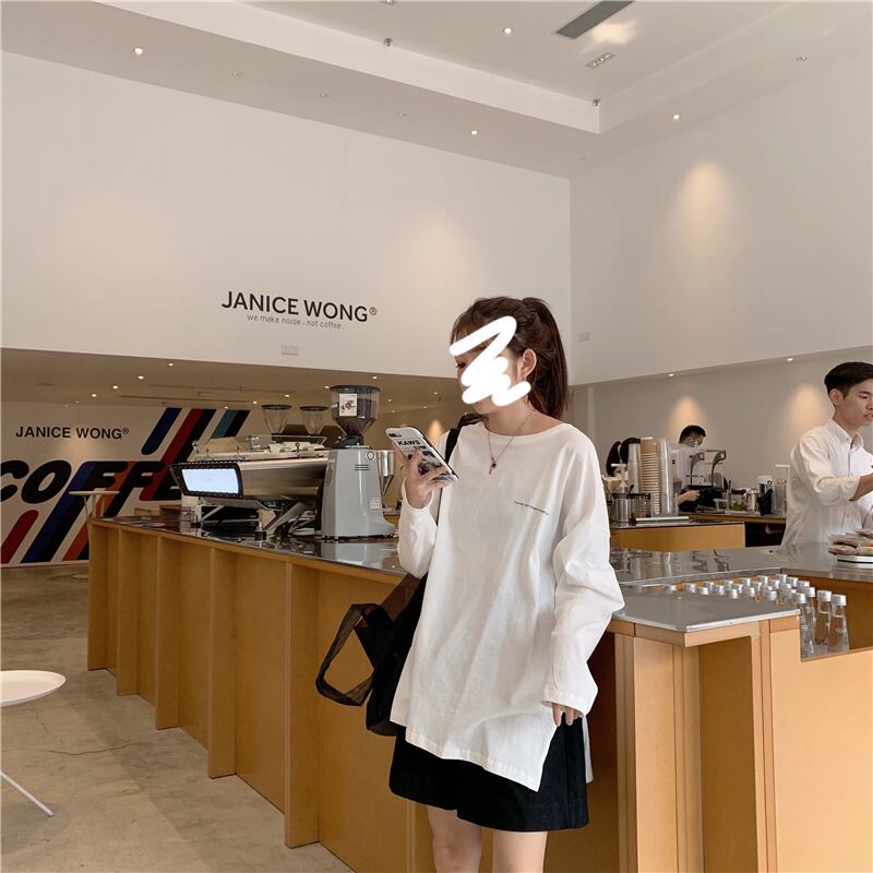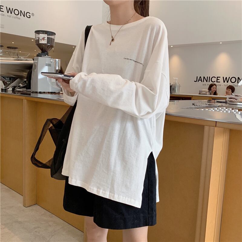 2020年夏の新しい長袖Tシャツレディースホワイトネットレッドイントップトレンディなルーズワイルドヘッジエインスタイルボトミングシャツ YY-ファッション37486055726