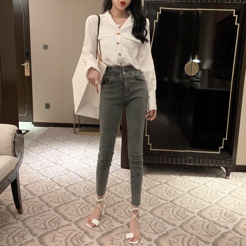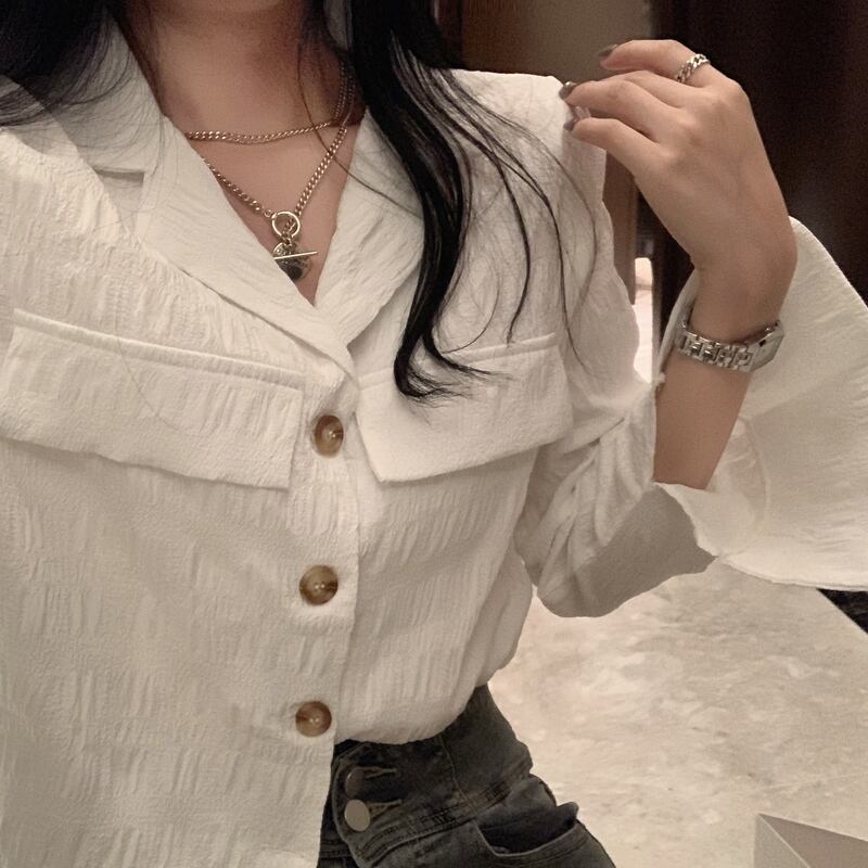 2020年夏の新作シャツレディースレトロ香港フレーバー長袖ルーズデザインニッチシャツVネック気質トップ YY-ファッション98921810267