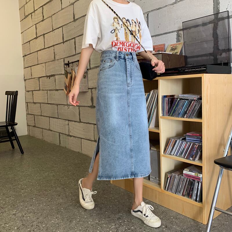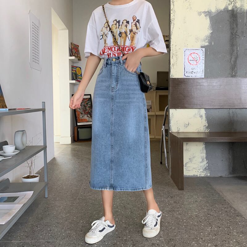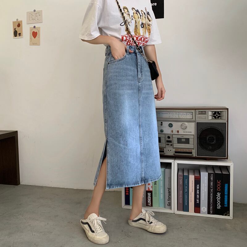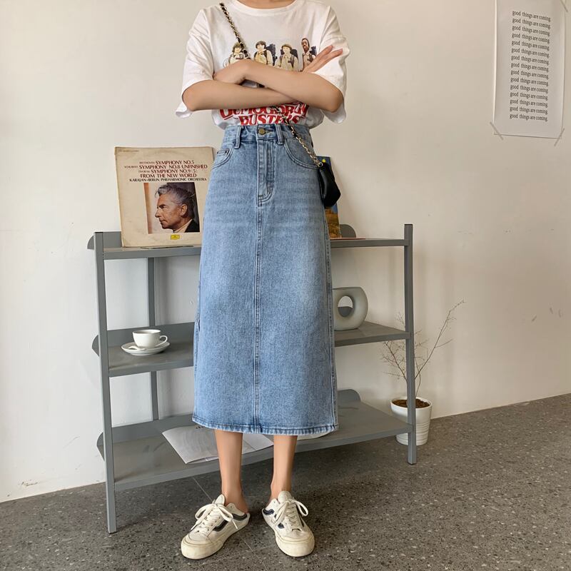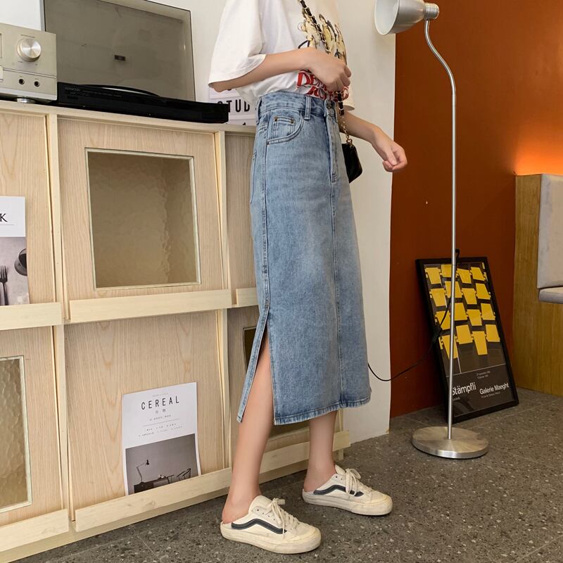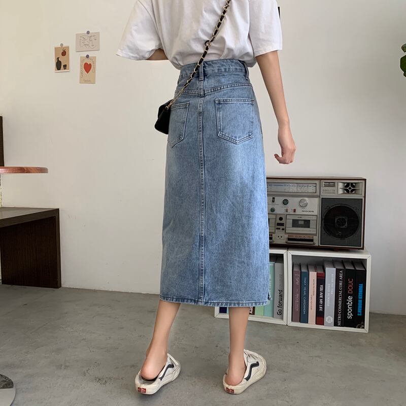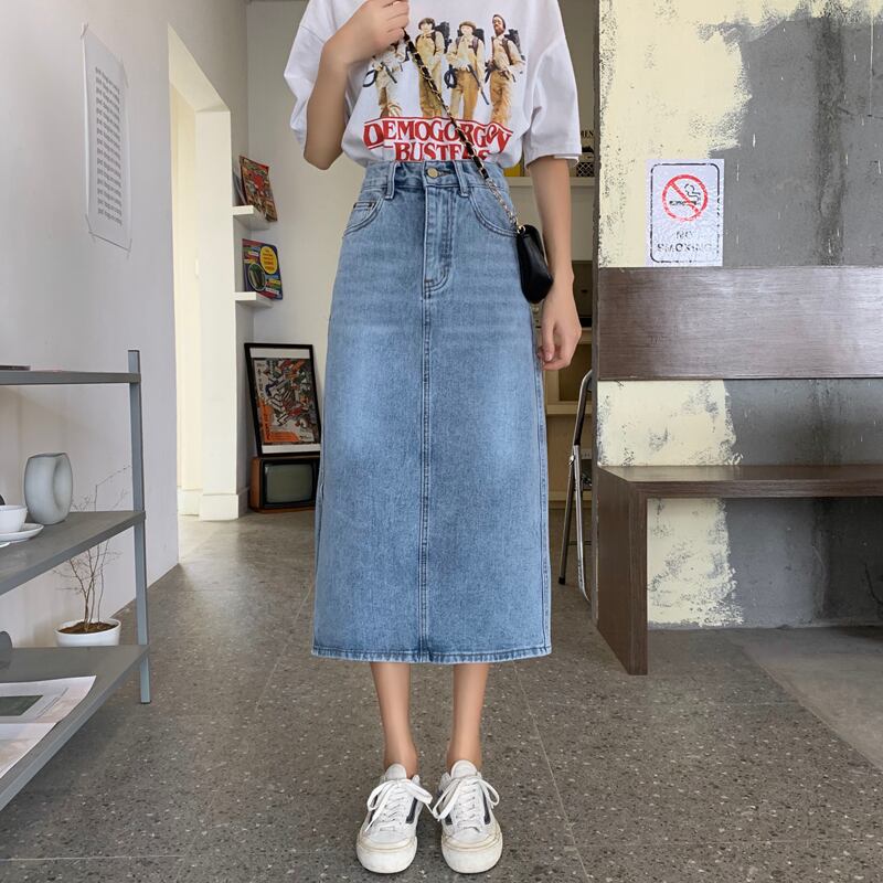2020年春夏新作レトロ女子学生ハイウエスト薄デニムスカートミドル丈スタイル YY-ファッション69488198021