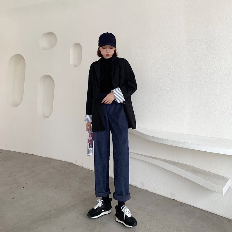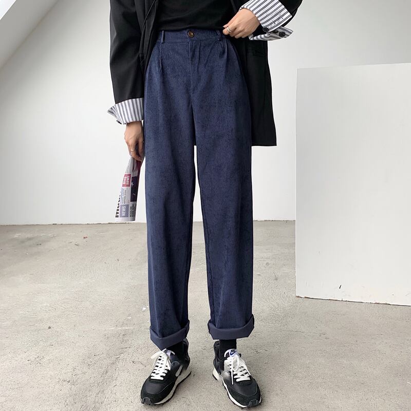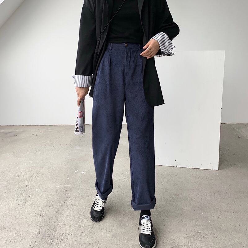 ルーズコーデュロイワイドレッグパンツトレンディな2020年夏ニュースタイルエラスティックウエストカジュアルハイウエスト無地ストレートレッグパンツレディース YY-ファッション90247552911
