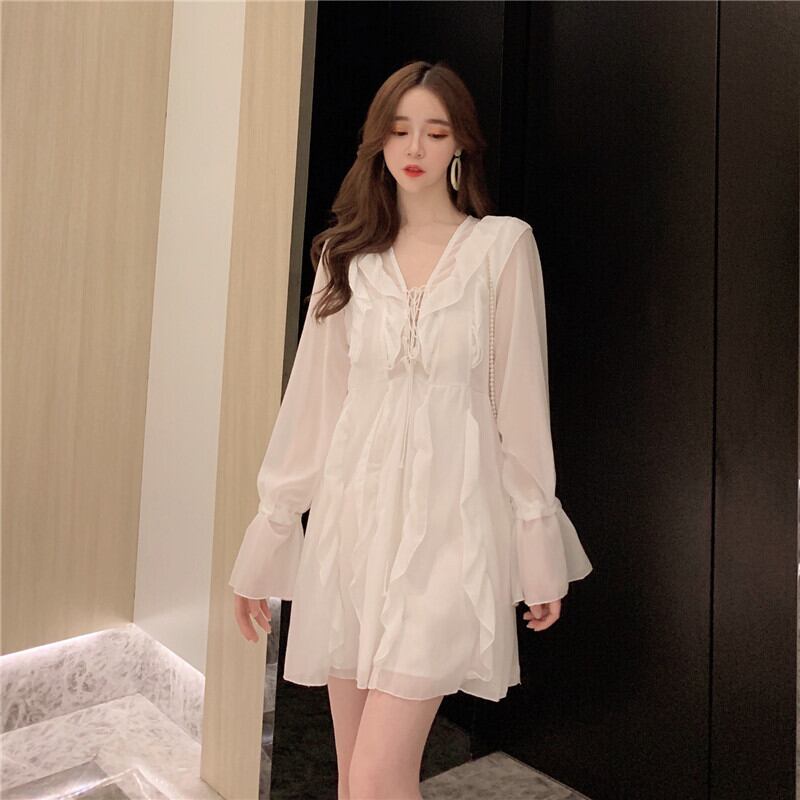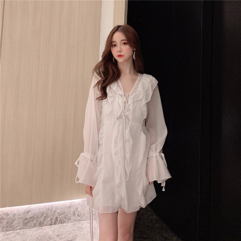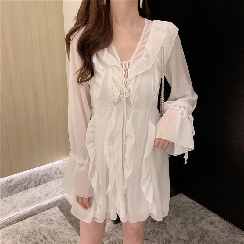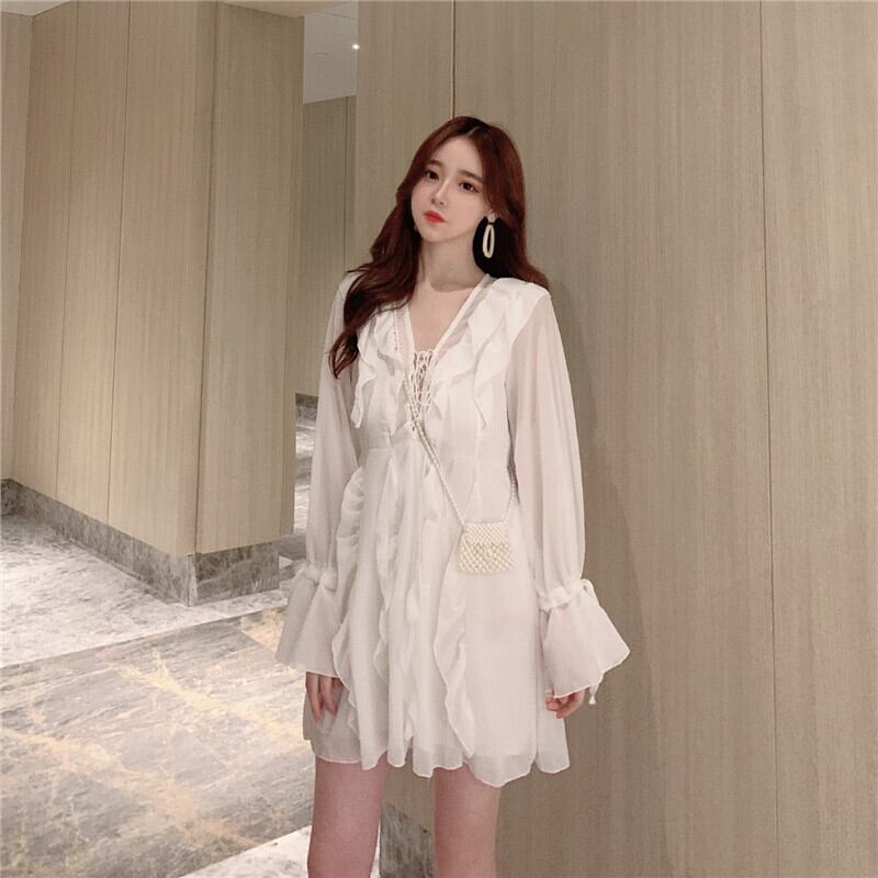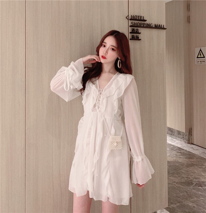 2020年初春新気質レディーススタイル気質ドレス非常に妖精Vネックシフォンシャツ木製イヤースカート YY-ファッション22388289058