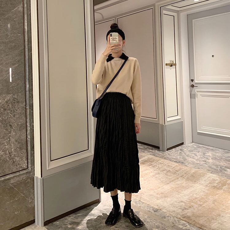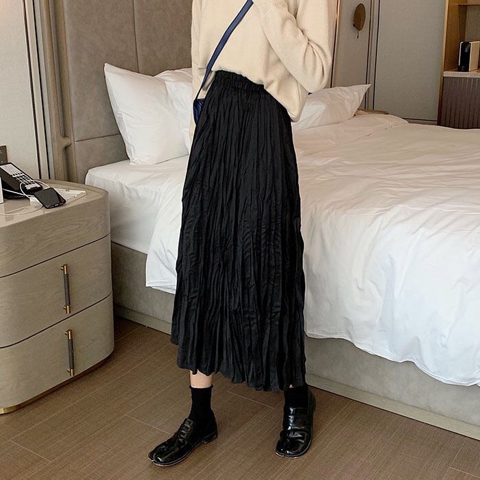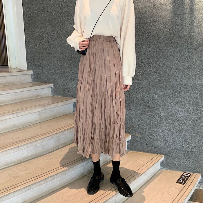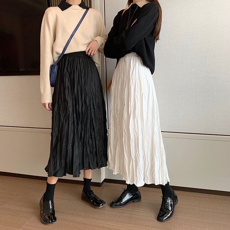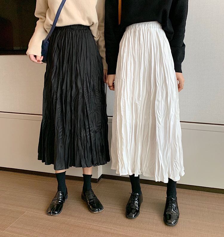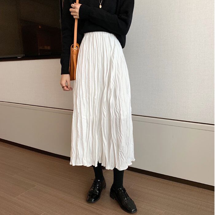 ハーフレングススカート女性2020年夏新作センスピュアカラートレンディな学生プリーツミドル丈スカートハイウエスト薄いプリーツスカート YY-ファッション83071245646
