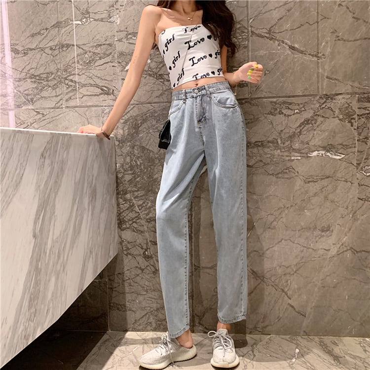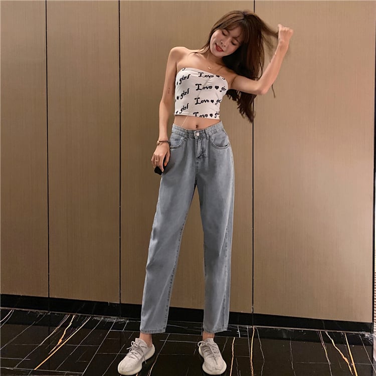 2020年初春ハイウエストワイルドストレートルーズワイドレッグジーンズパンツ女子学生スリムパンツの新バージョン YY-ファッション49915905874
