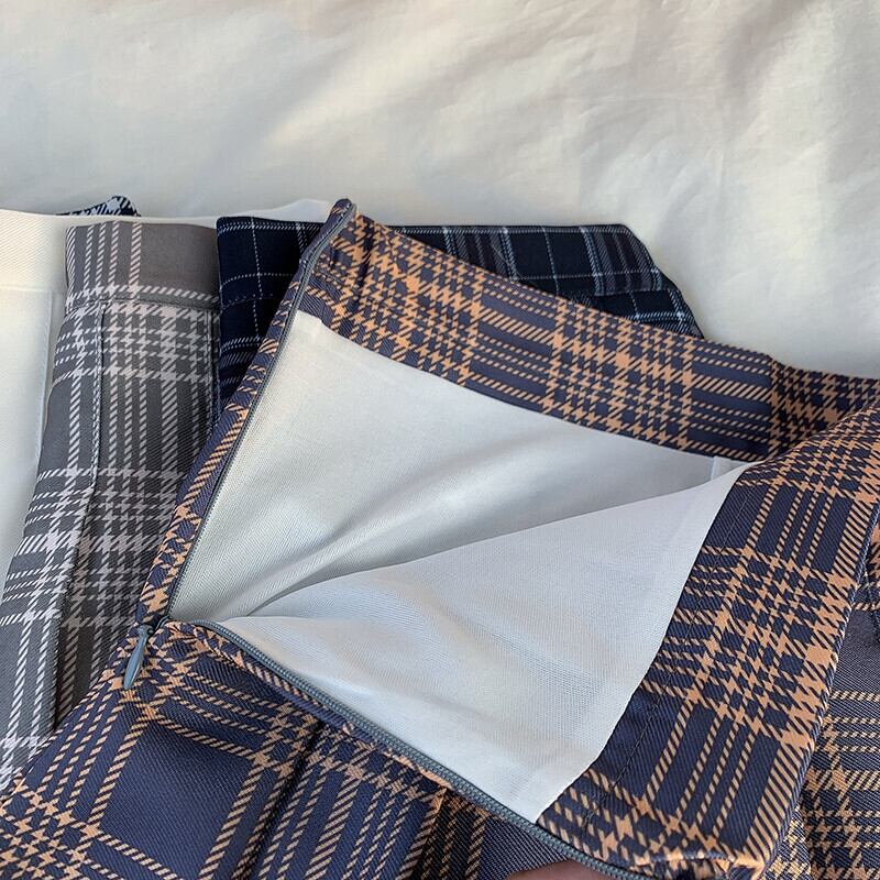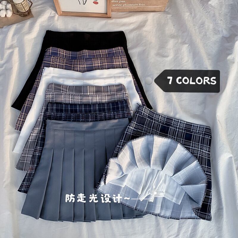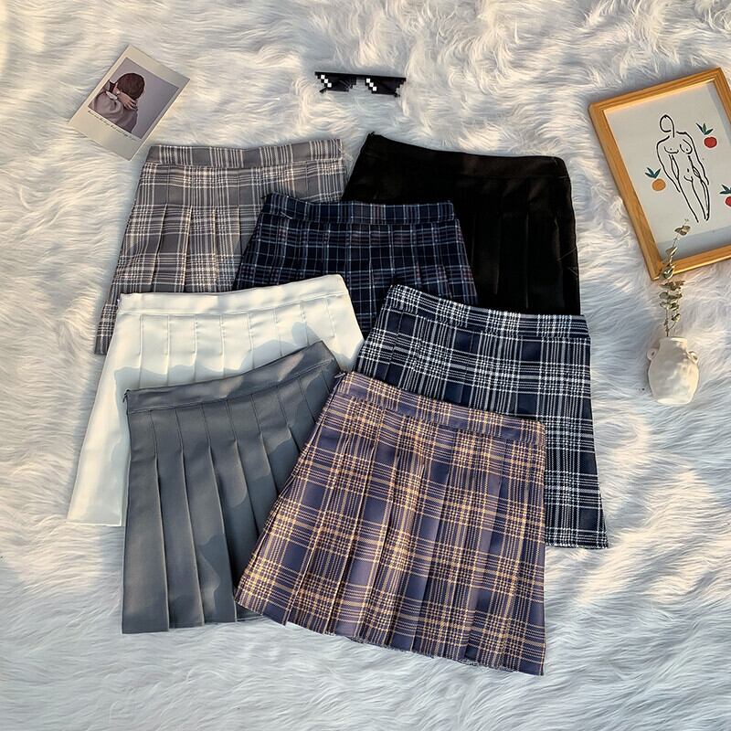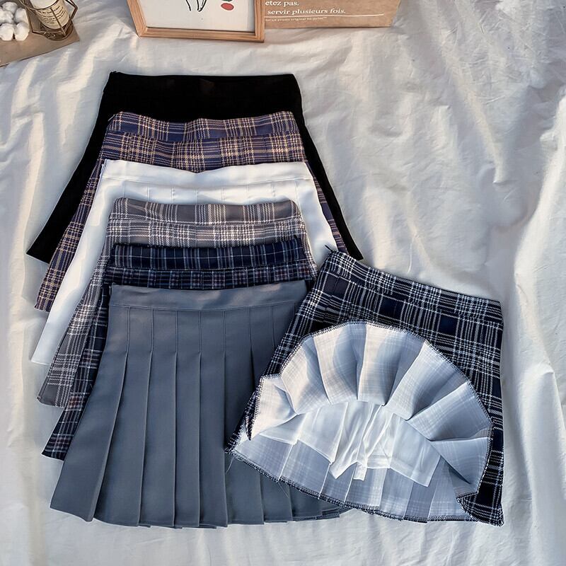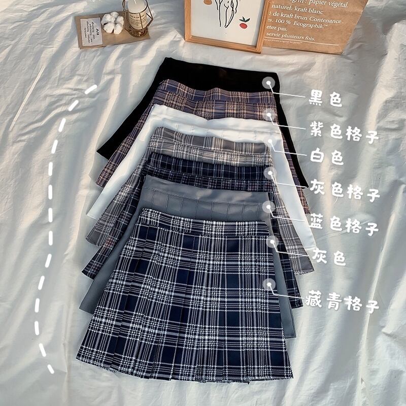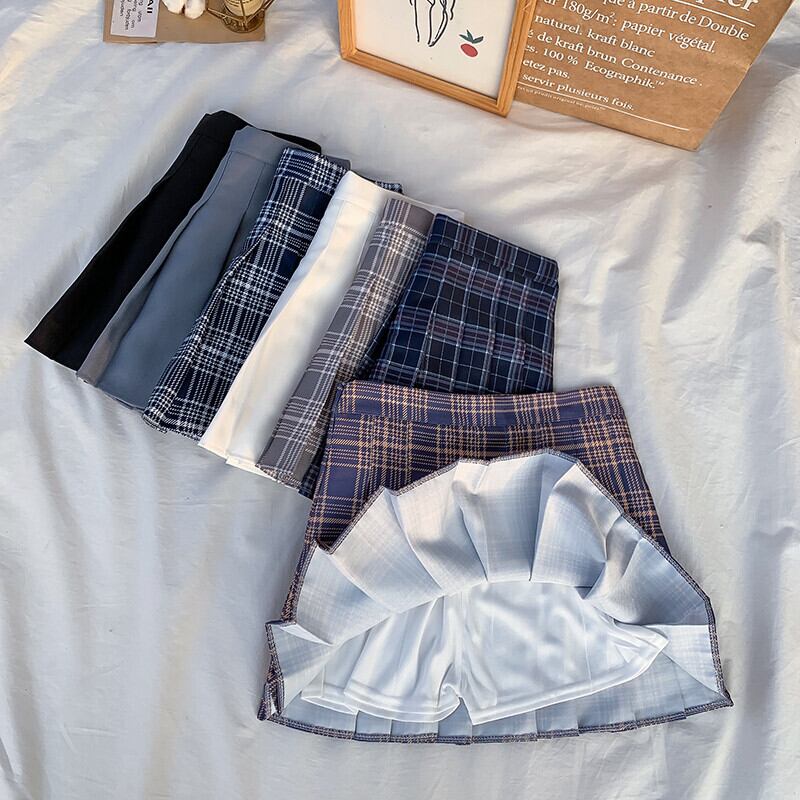 ショートハイウエストチェック柄プリーツスカートレディース2020年秋大学防風ハーフレングススカートAラインブラックショートスカートトレンド YY-ファッション84185522620