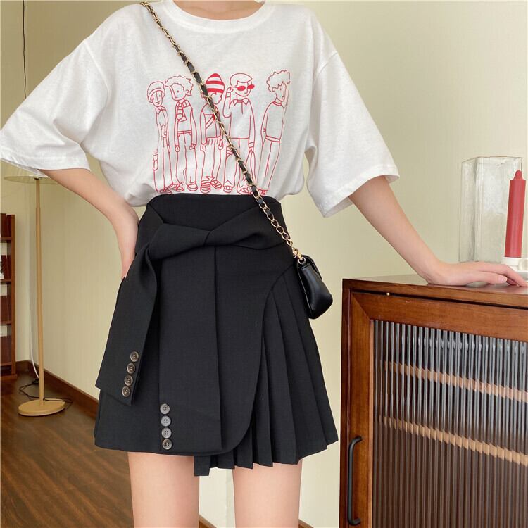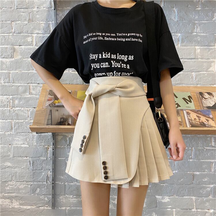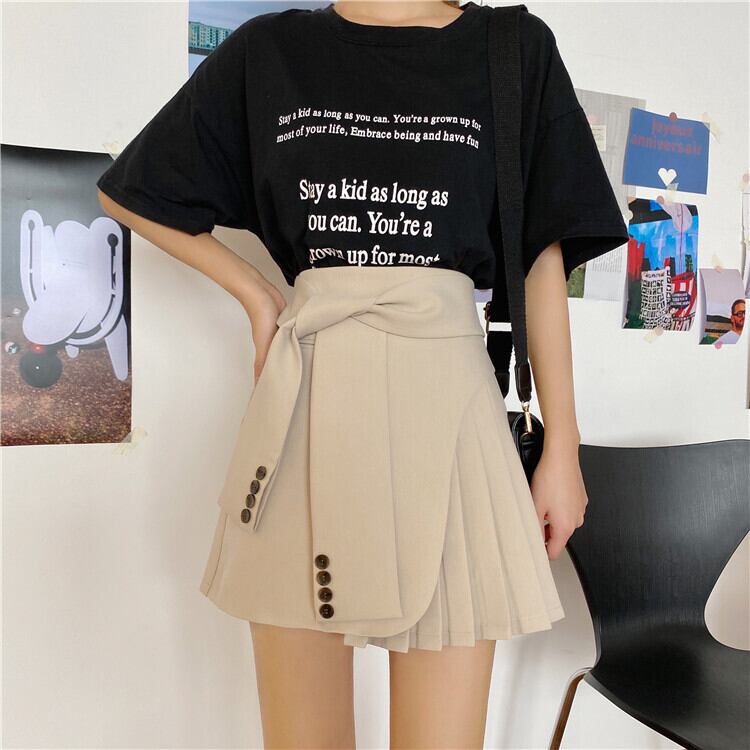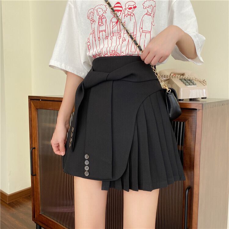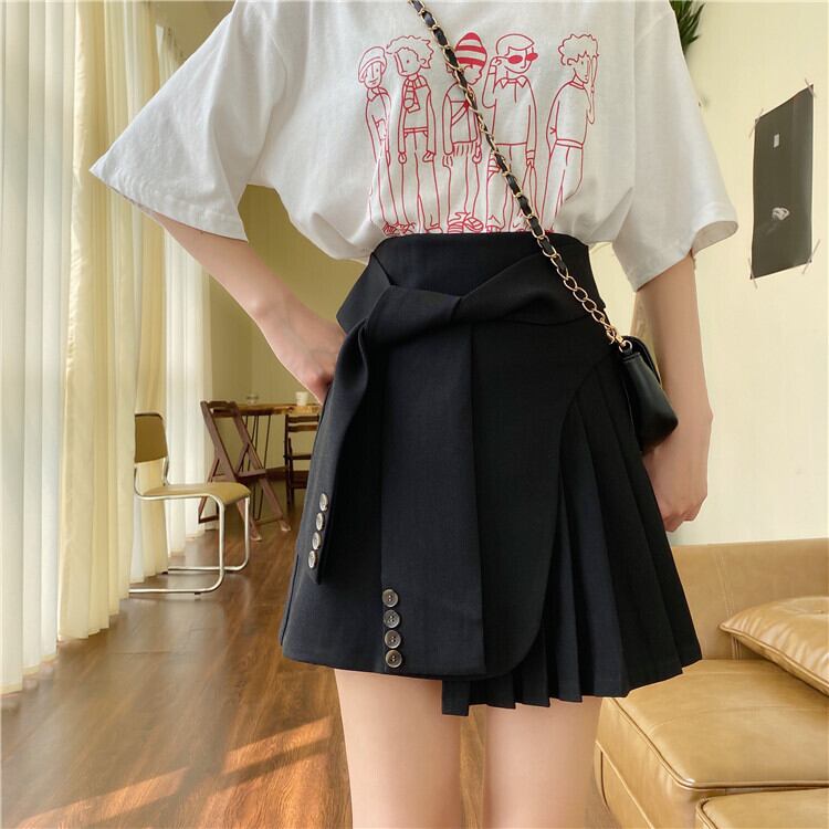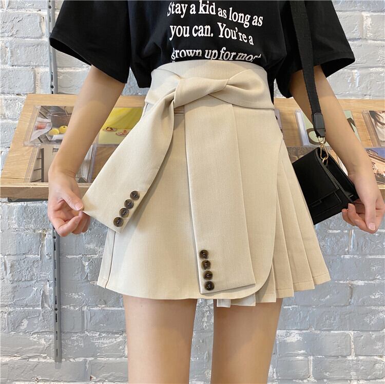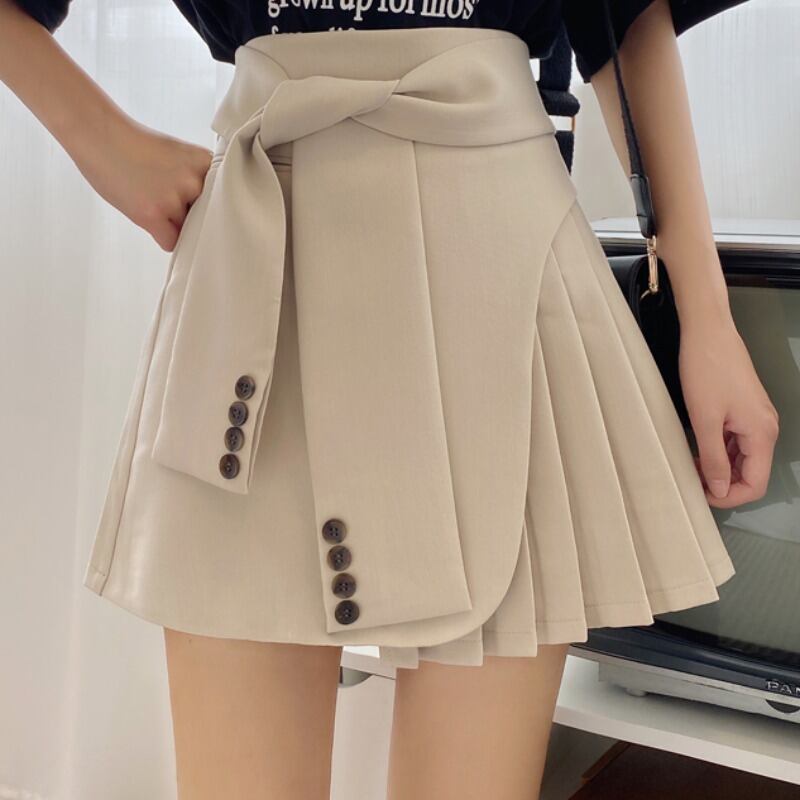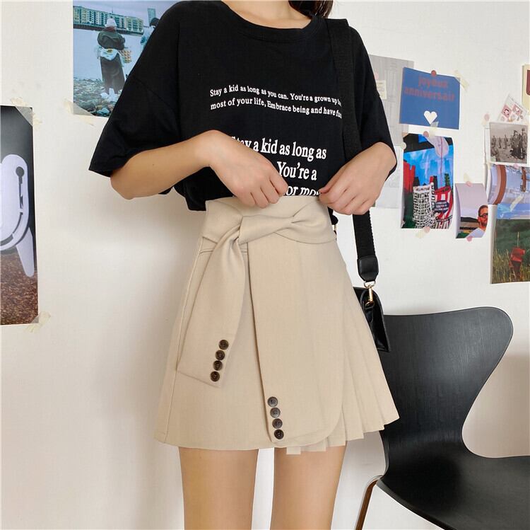 作業着スカート冬服2020新しい不規則なAラインスカート女性の細いハイウエストプリーツスカートショートスカート YY-ファッション63281986340
