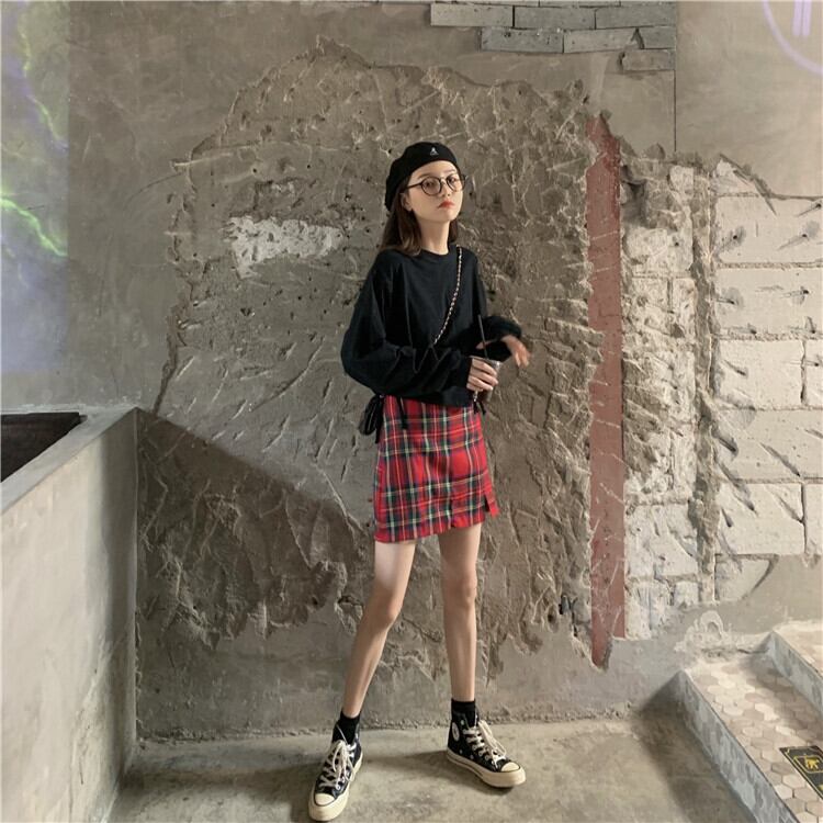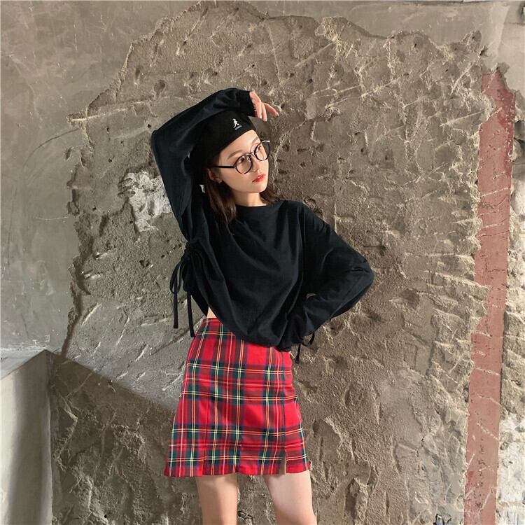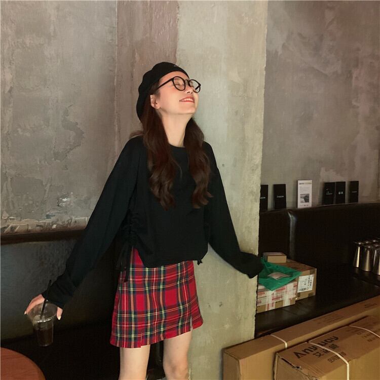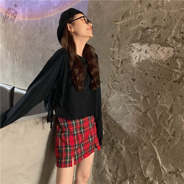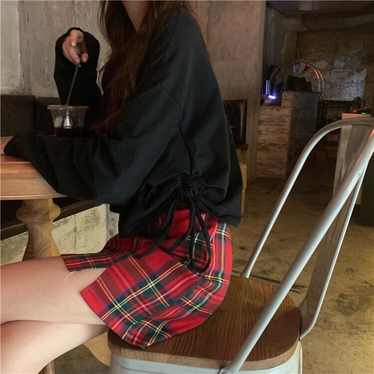色:ブラックトップ,チェック柄スカート