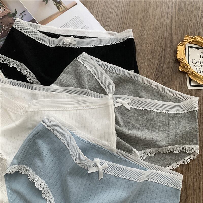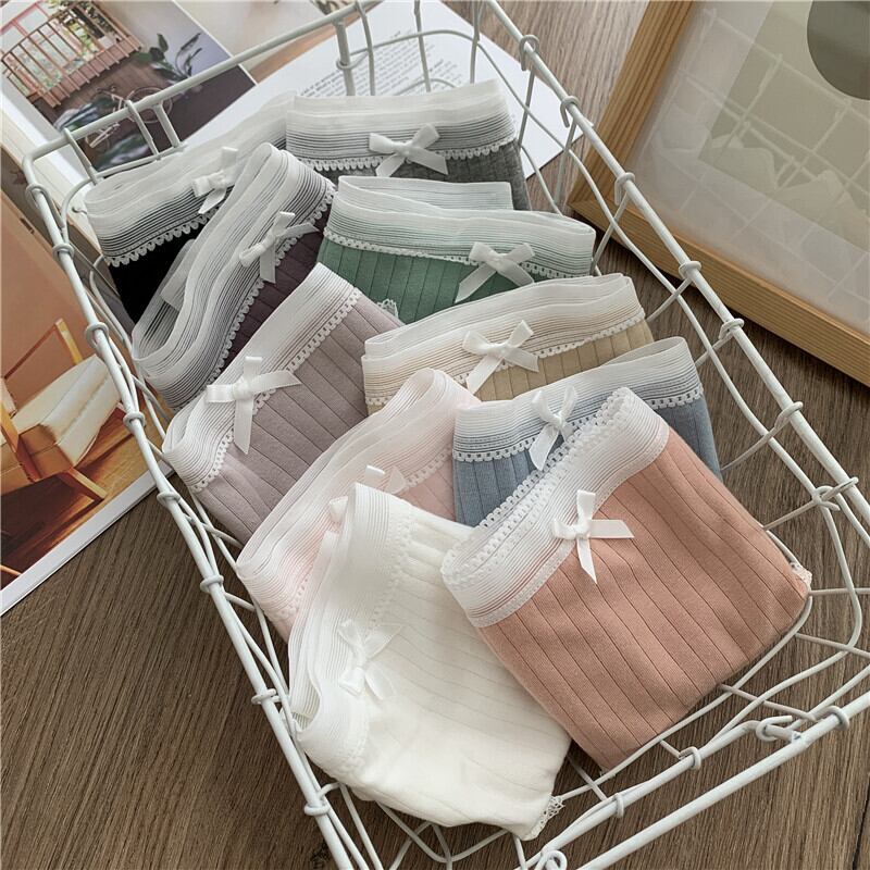 4ピース夏かわいいeseレースボウ下着ミッドウエストシームレスセクシーブリーフ YY-ファッション43943149603