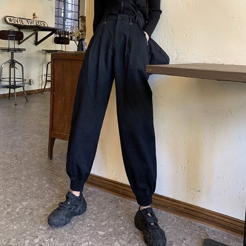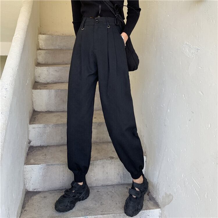 2020年春秋新バージョンのシューズオーバーオールトレンディなブラックルーズパンツinsスーパーストレートカジュアルパンツレディース YY-ファッション36791863882