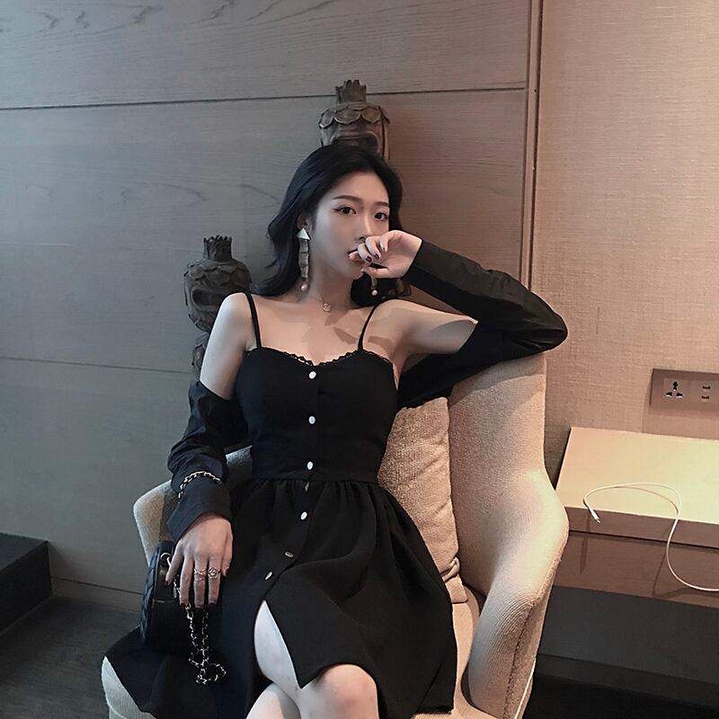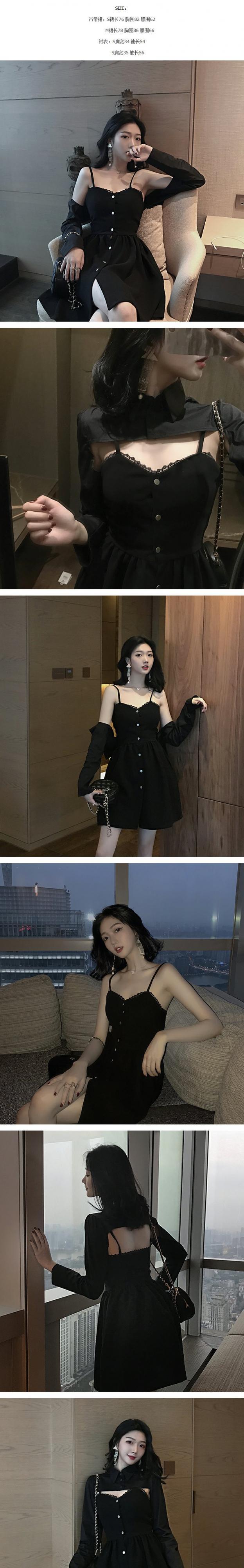2020年の新しい女性の夏のスカートスタイルのスリムなサスペンダー香港スタイルのセクシーな黒の背中の開いたドレスツーピース YY-ファッション80936192709