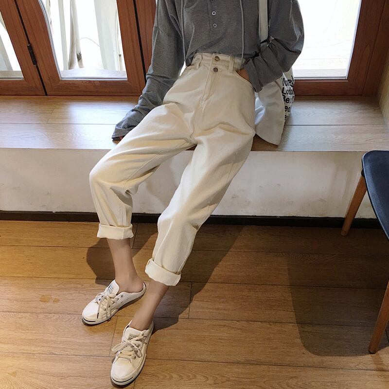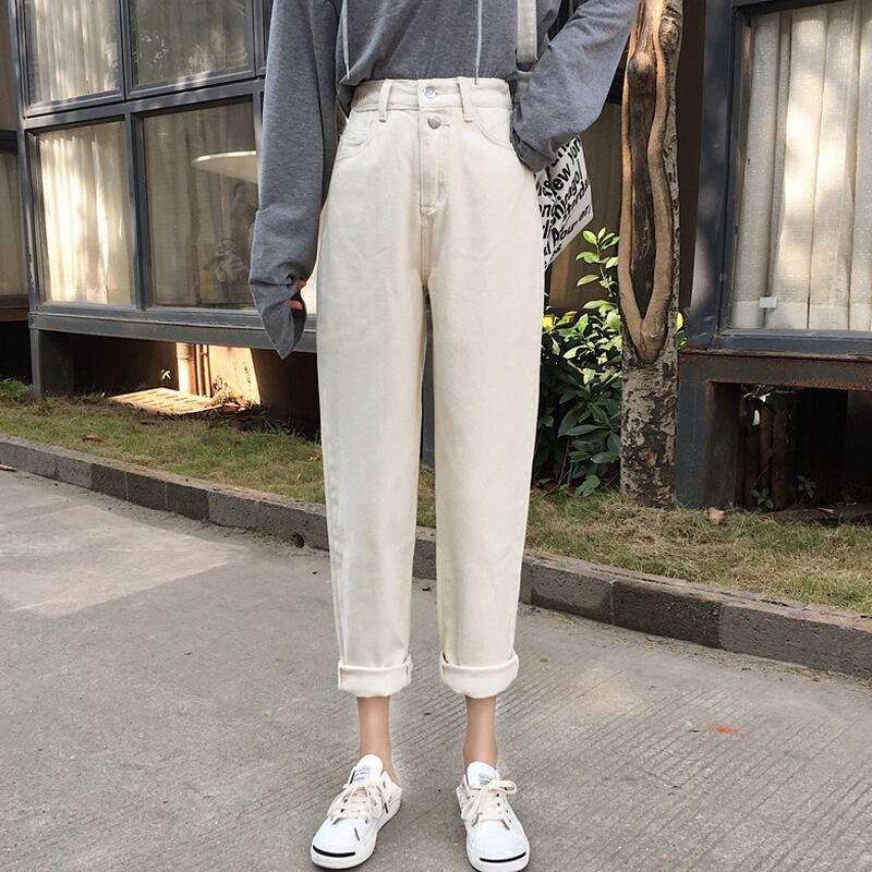 ホワイトパンツ2020年夏新作ハイウエストジーンズ女子学生バージョンルーズワイルドナインポイントパンツストレートパンツ YY-ファッション16849765750