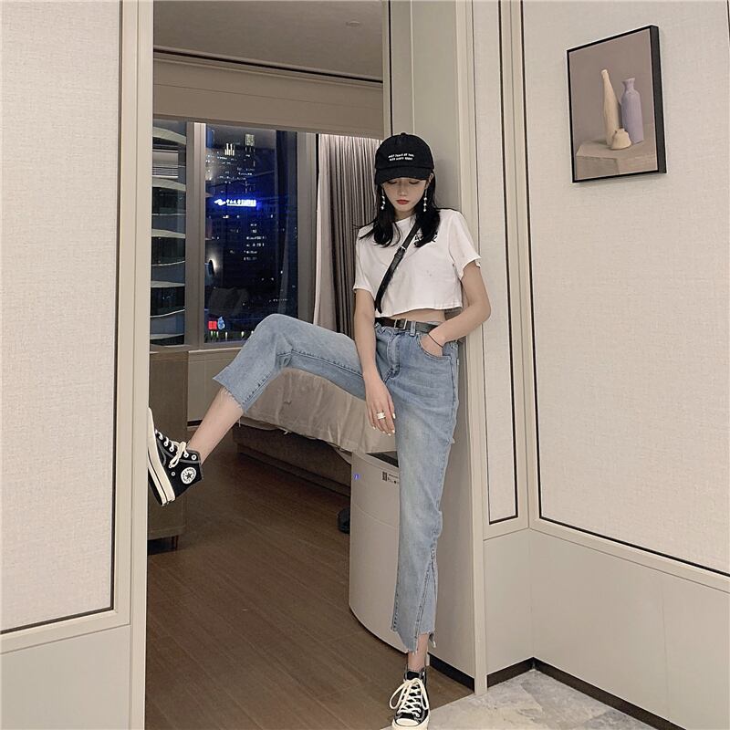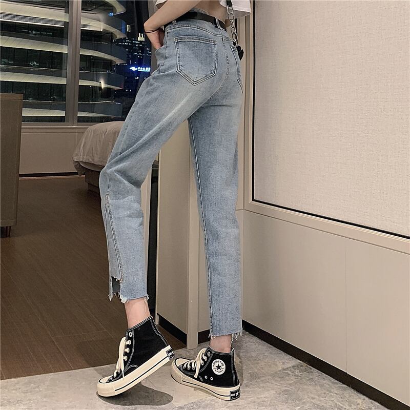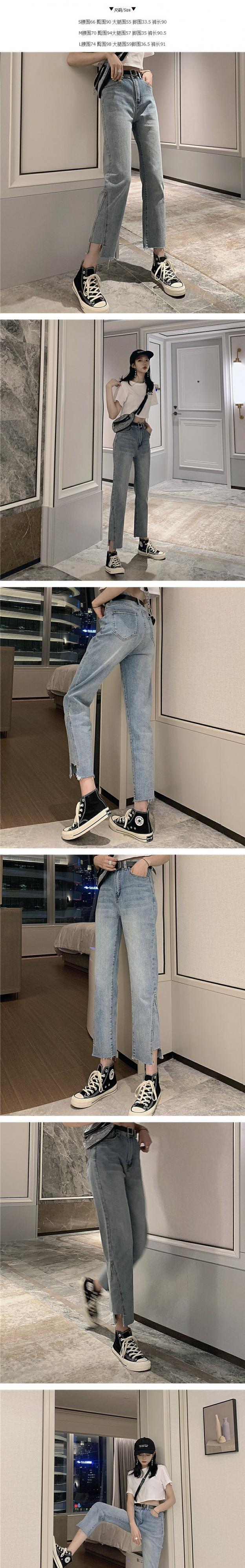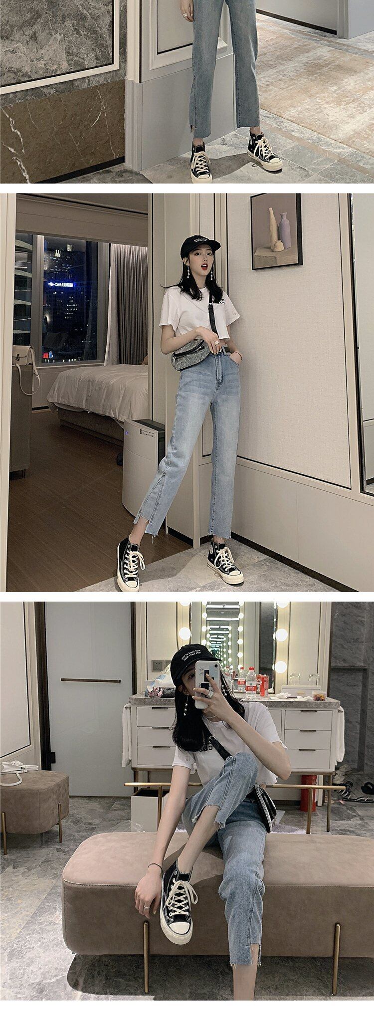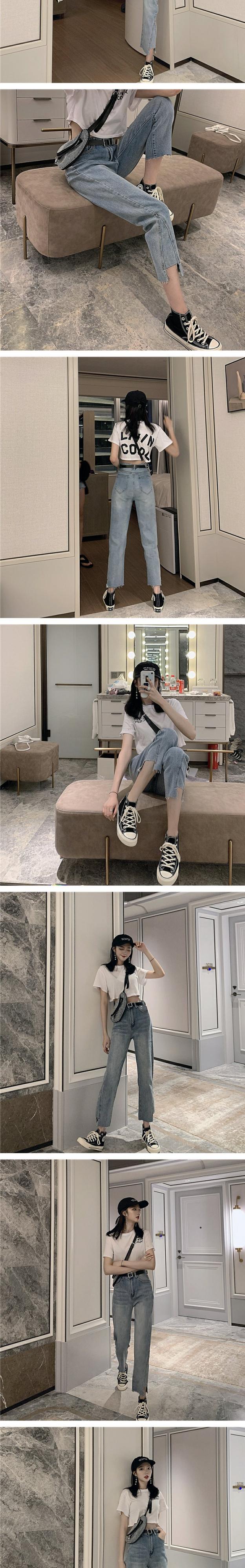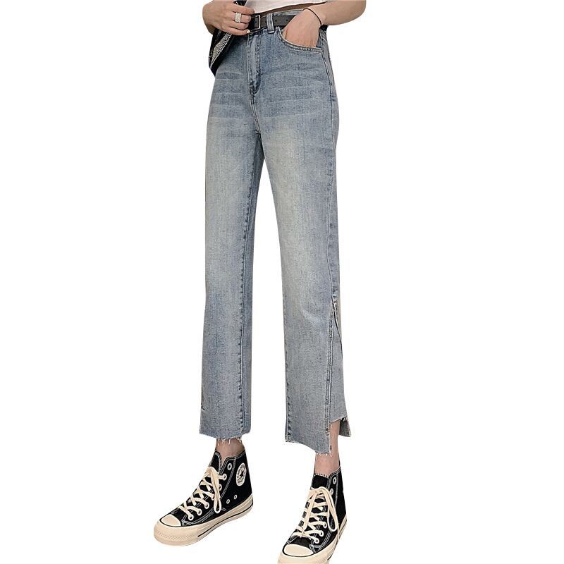 2020年の新しい女性用ルーズジーンズサマーバージョンのウォッシュドハイウエストパンツ、カットエッジの学生ストレート9ポイントパンツ YY-ファッション50606114219