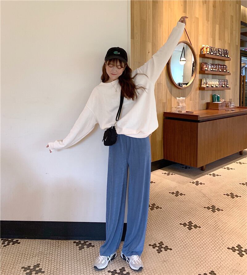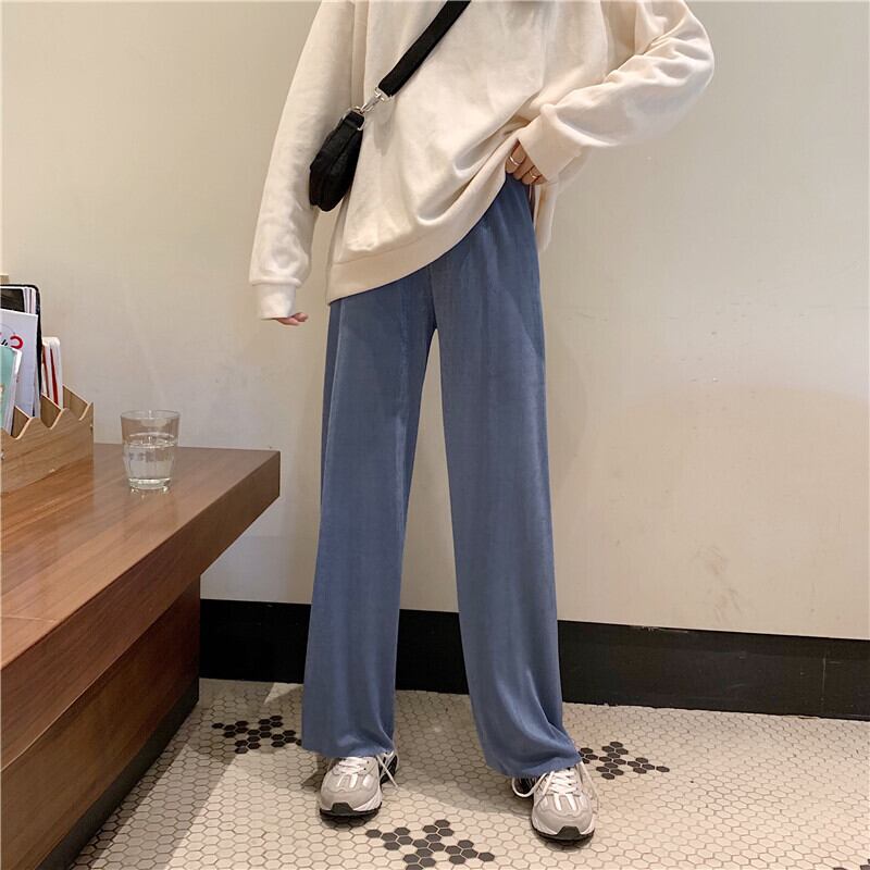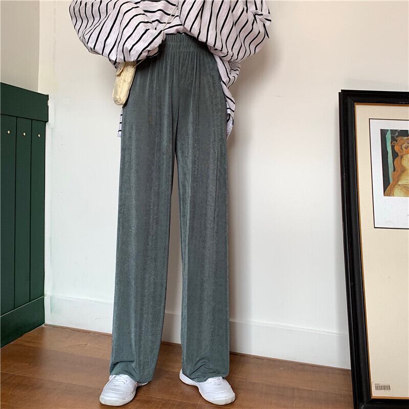 新しいドレープローズカジュアルワイドレッグパンツハイウエストパンツレディースブラックストレートパンツトレンドの2020年夏バージョン YY-ファッション12598910799