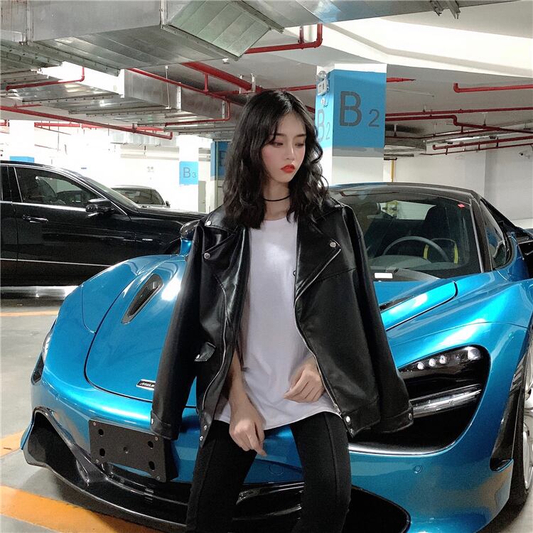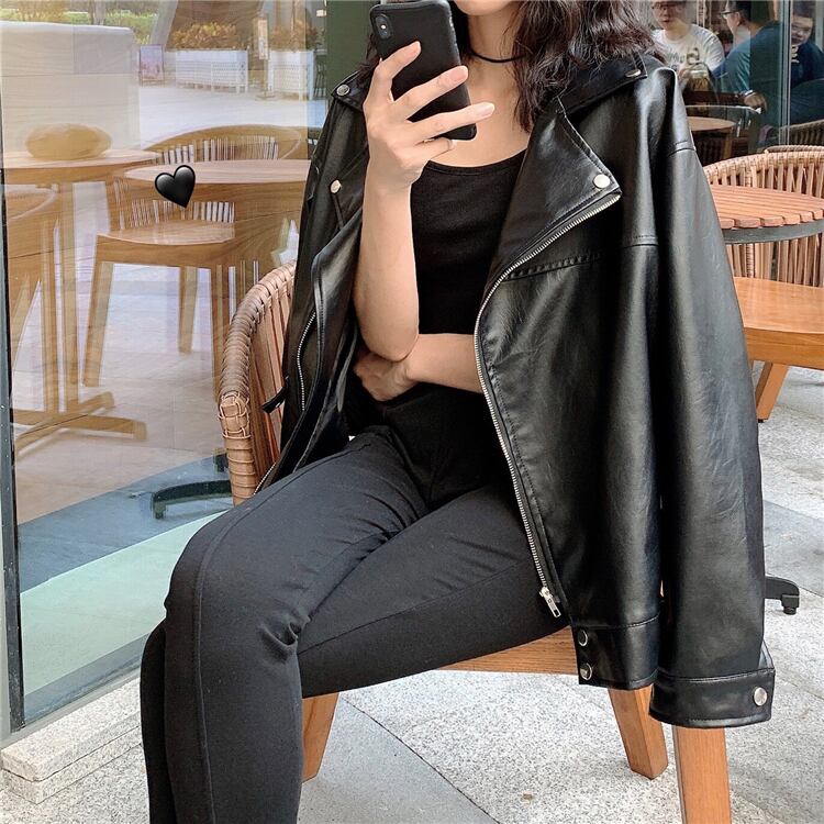ブラックpuレザージャケット女性2020年夏新しいネットレッドバージョンルーズオールマッチオートバイジャケットジャケットトレンド YY-ファッション4398957036
