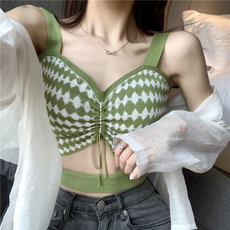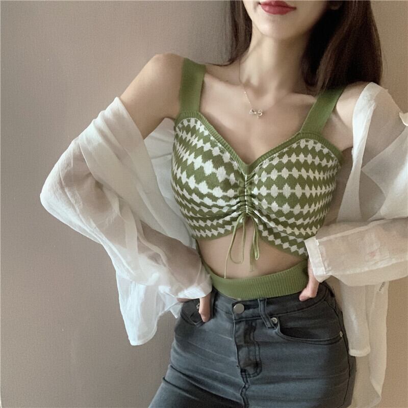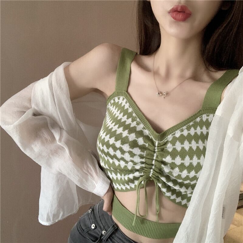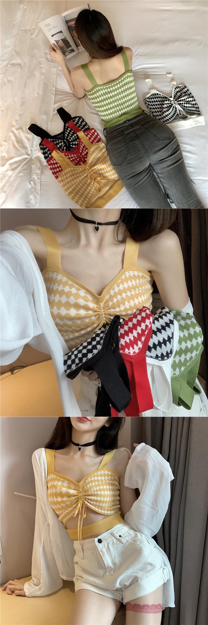 春夏バージョン2020新しいスリムスリミングキャンディーカラードローストリングVネックショートシックアウターウェアキャミソール YY-ファッション80903852681