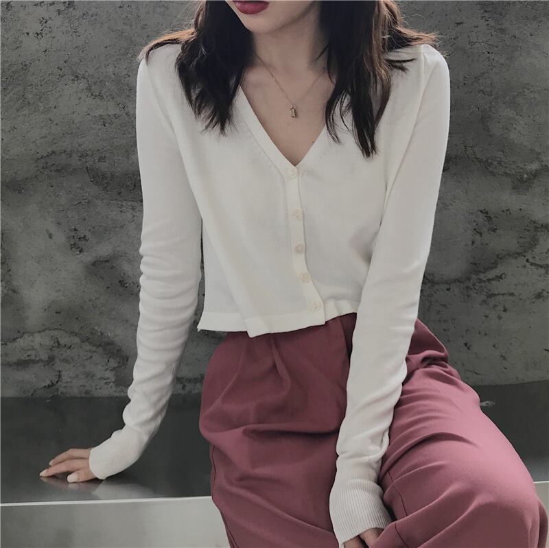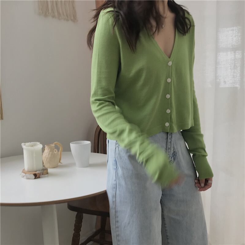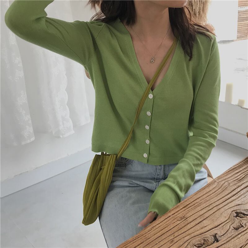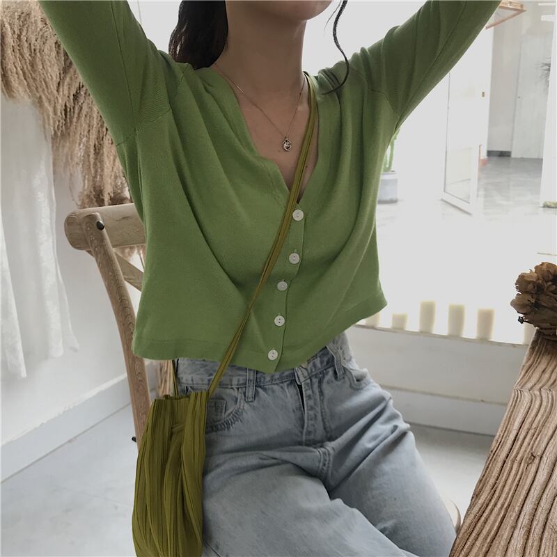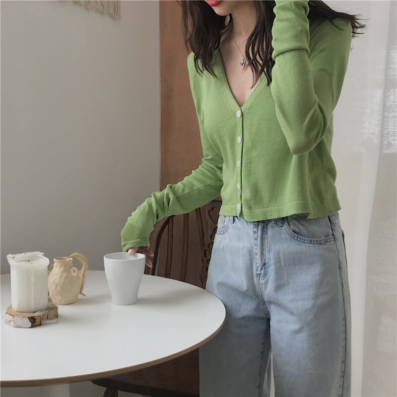 2020年初春ファッションVネックアボカドニットカーディガンジャケットレディースショートエアコンシャツ長袖日焼け止めシャツ YY-ファッション69512781728