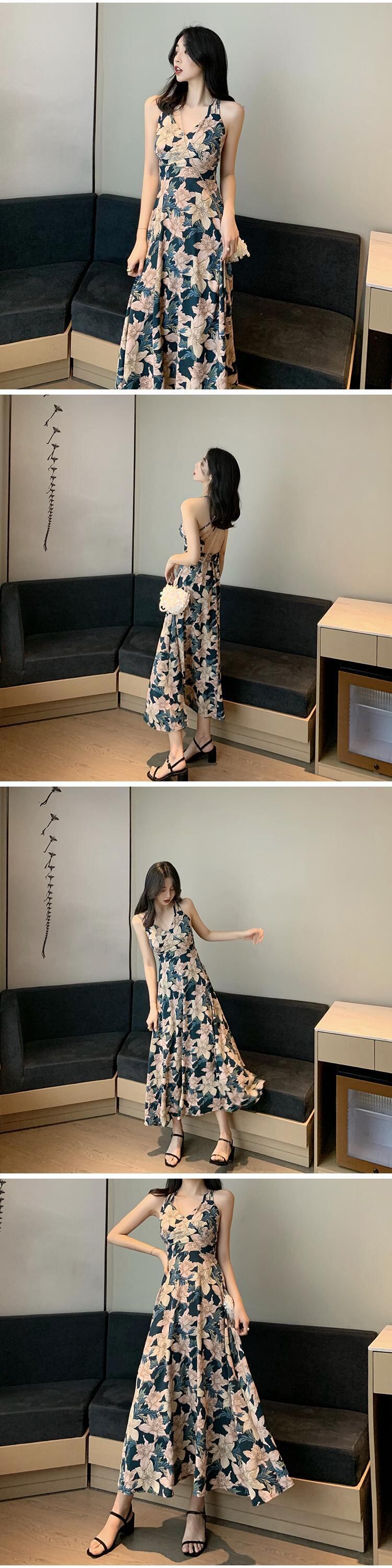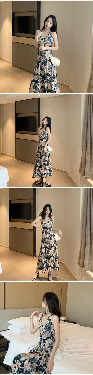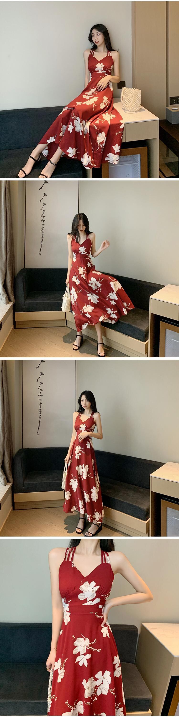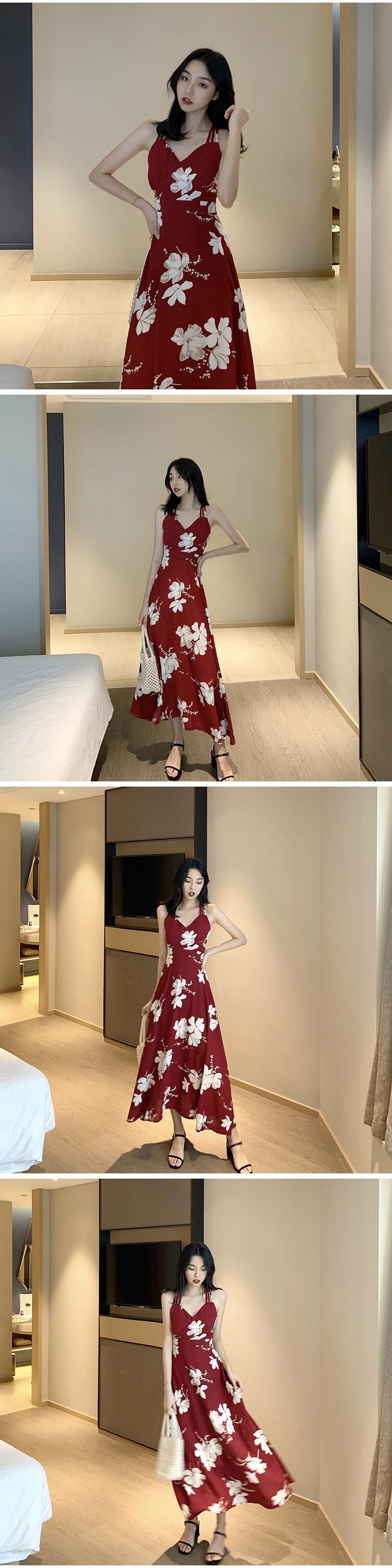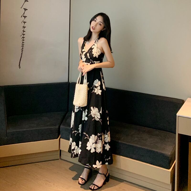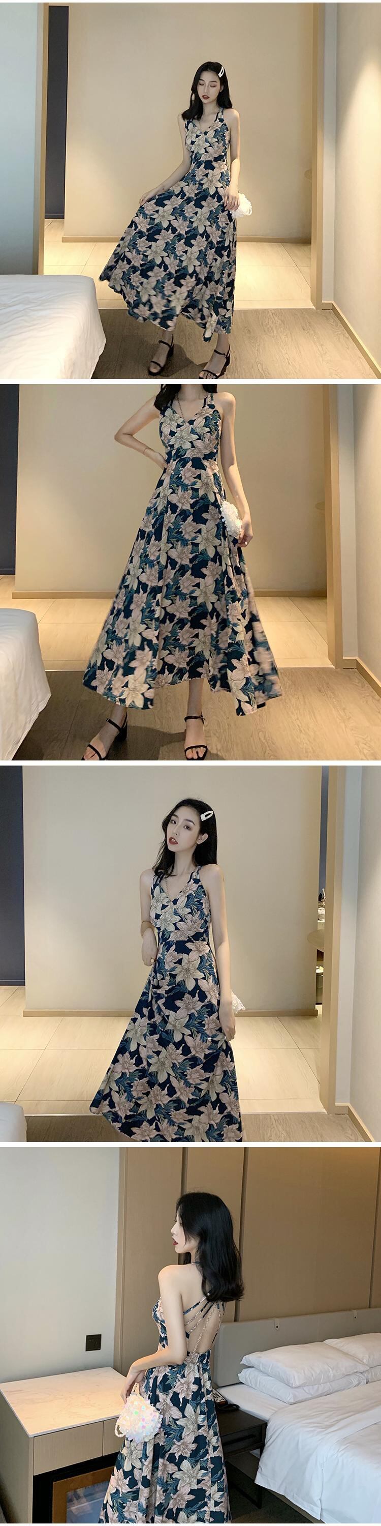 ウエスタンスタイルのロングホルターセクシーな女性の夏のサスペンダードレスのバージョン女性の海辺の休暇ビッグスイングビーチドレス YY-ファッション77497755959