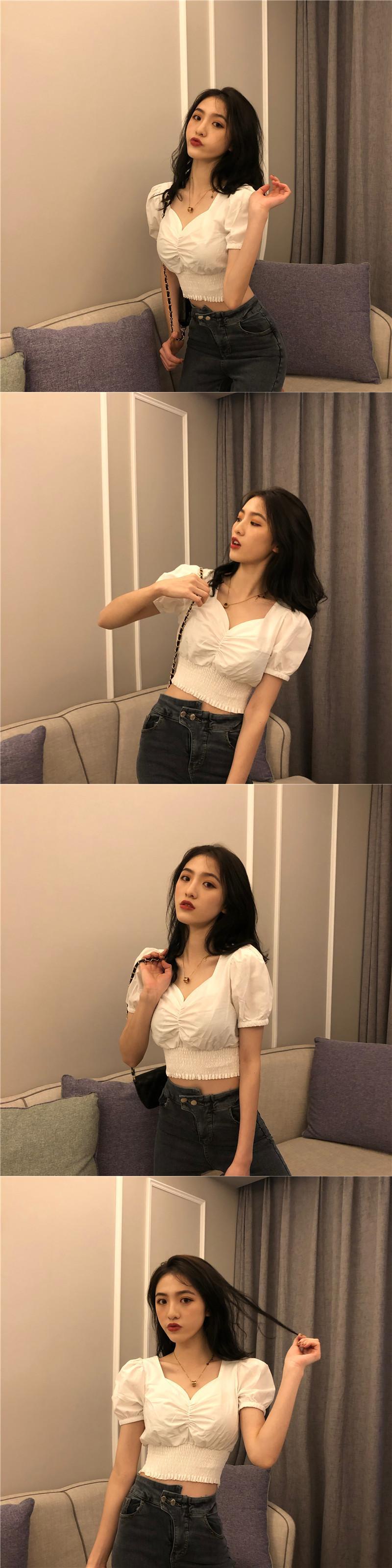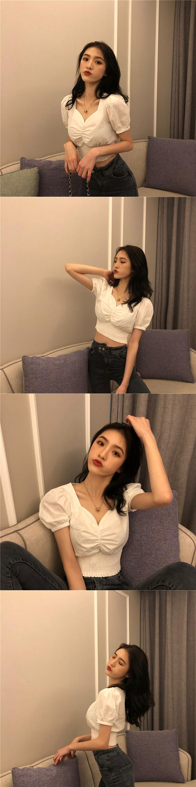 スタイルスタンダードショートシャツ サマーハイウェストウェストスリムトップス レトロ 夏物 YY-ファッション70239571126