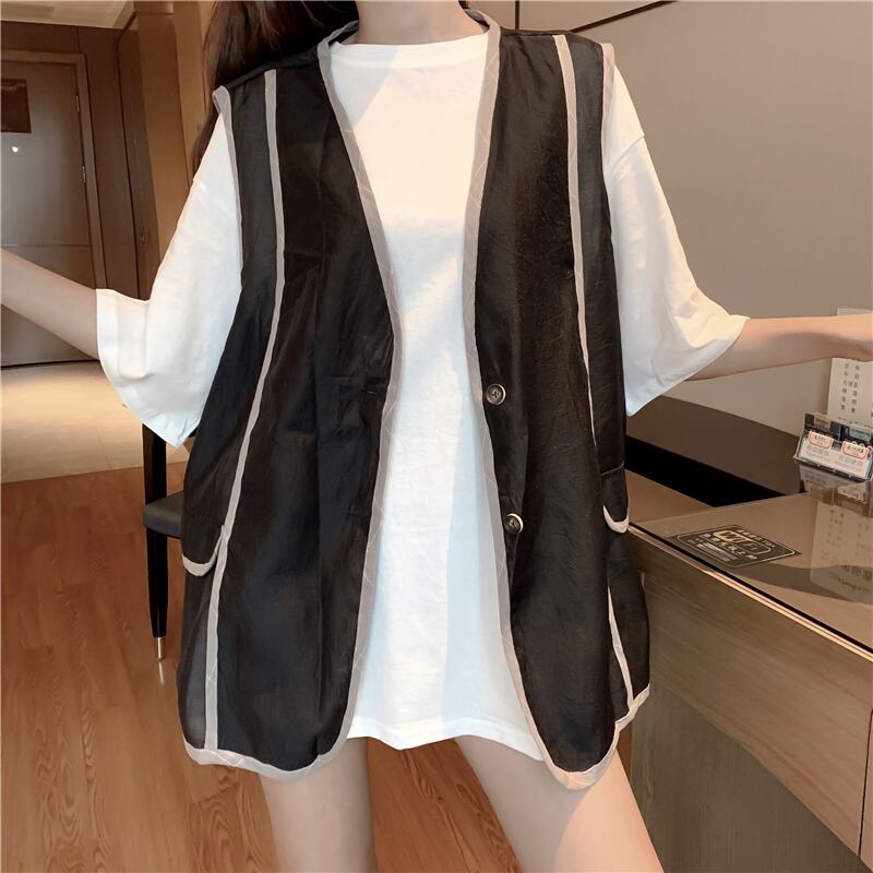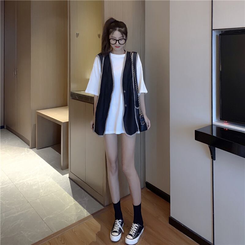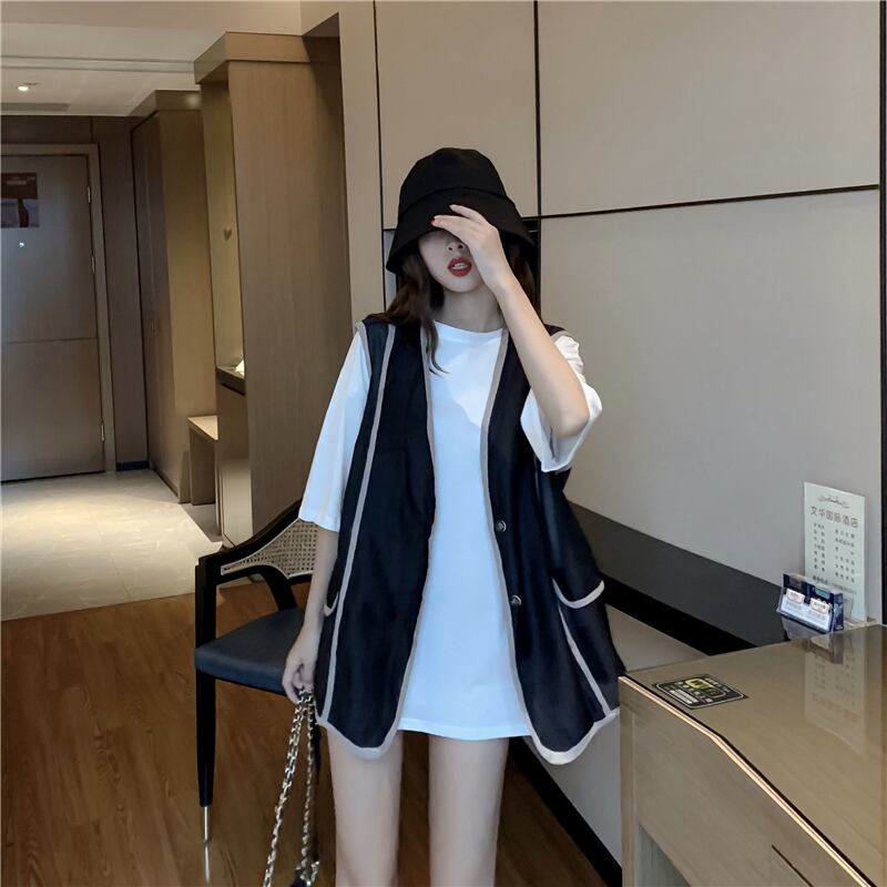 夏の新しい女性の香港フレーバールーズで薄いミドル丈T +ネットレッドシンネットヤーンワイルドベストツーピーススーツタイド YY-ファッション4983860258