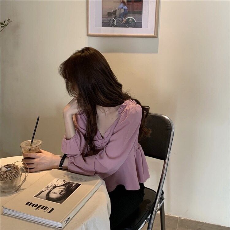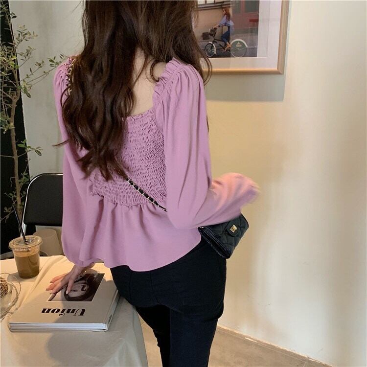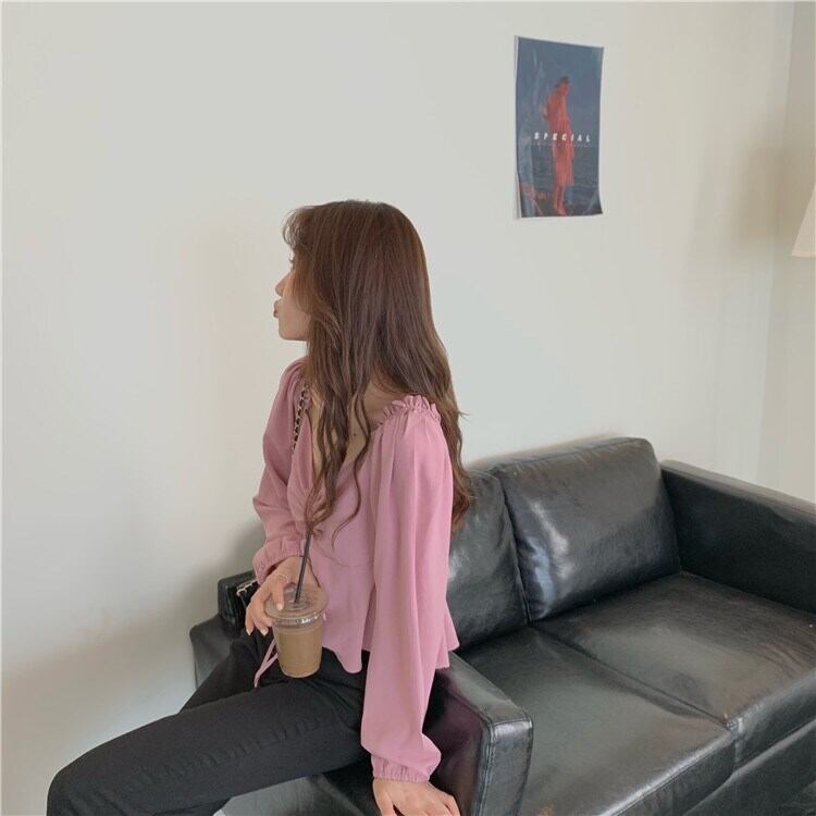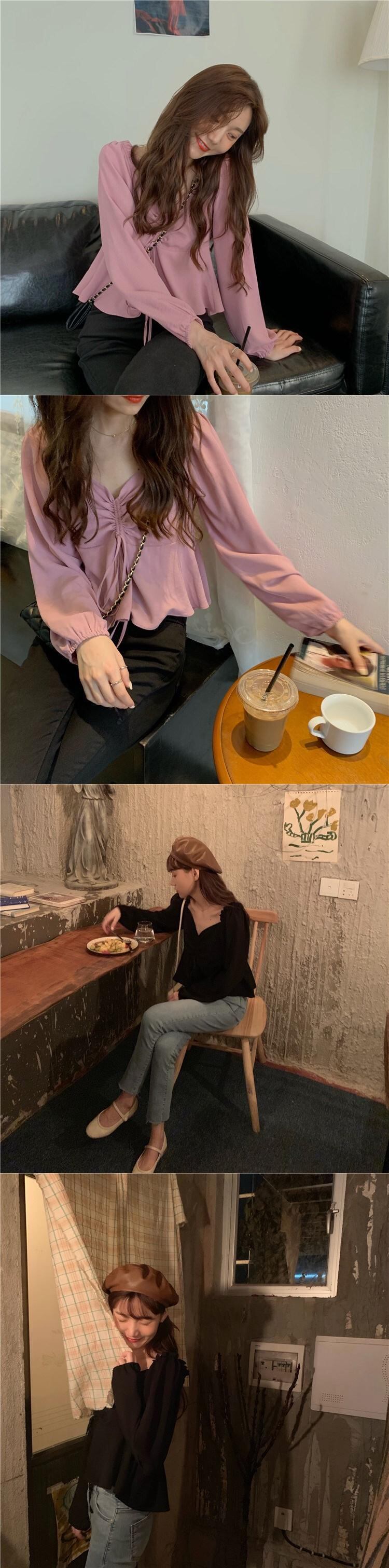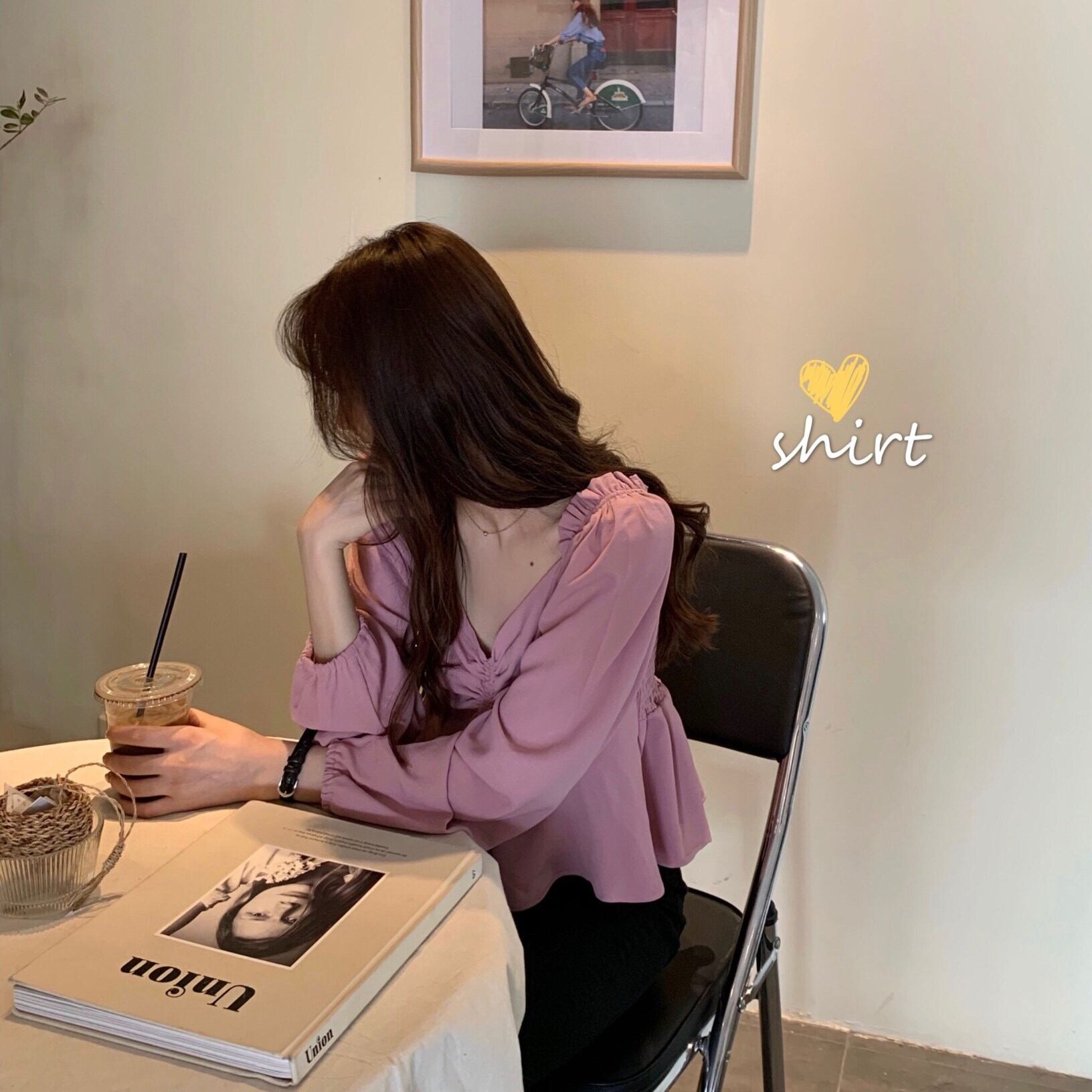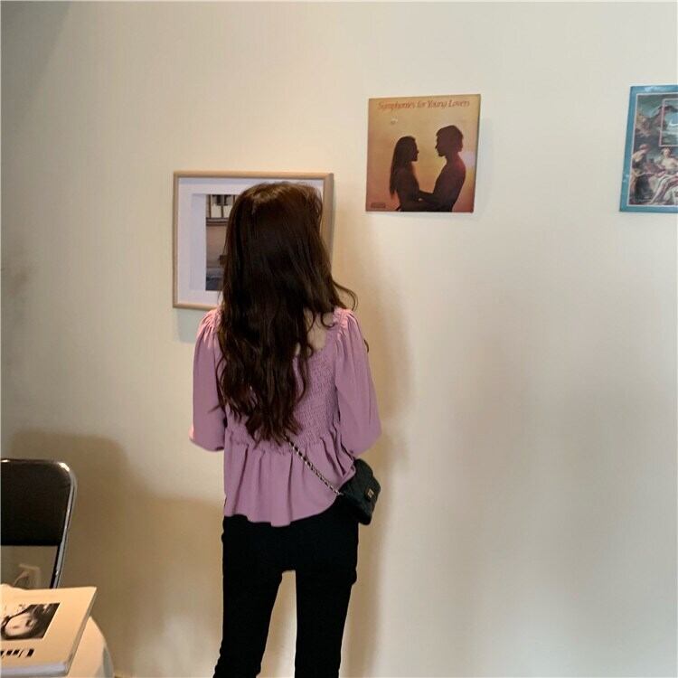 シャツ トップス サマースタンダードギャザールーズ薄手ショート長袖スリーブシフォン ロング レトロ 夏物 YY-ファッション43908480287