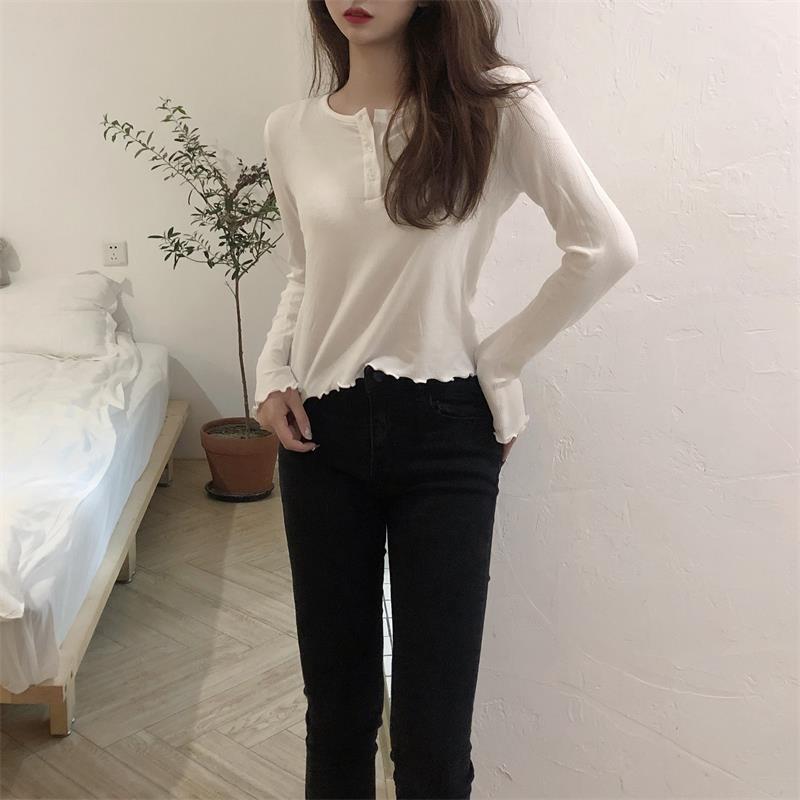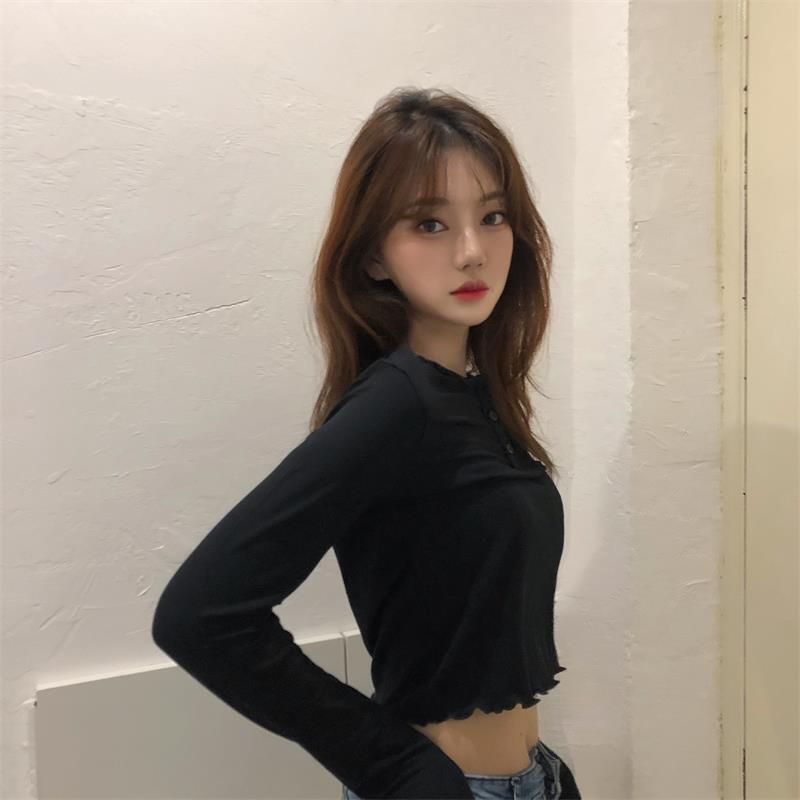 ファッション、シンプル、スリム、シン、ワイルド、ショート、シン、キクラゲの長袖セーター、2020年夏の女性のトレンド YY-ファッション7250177245