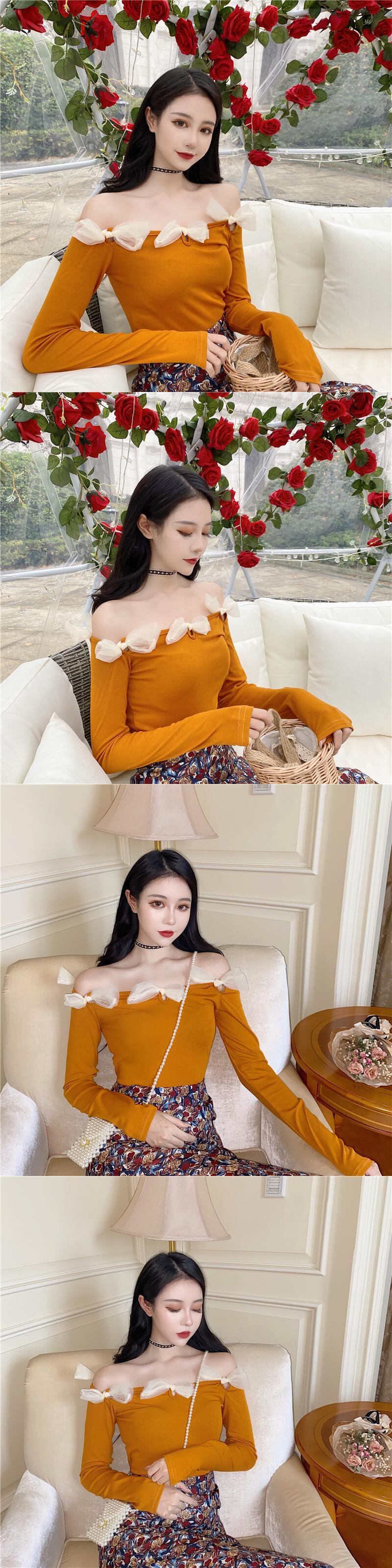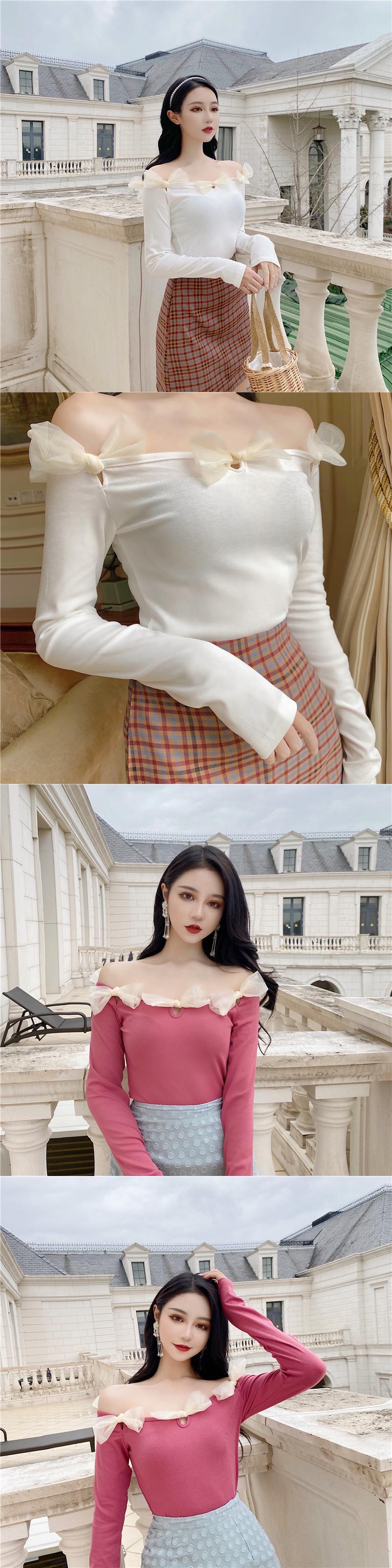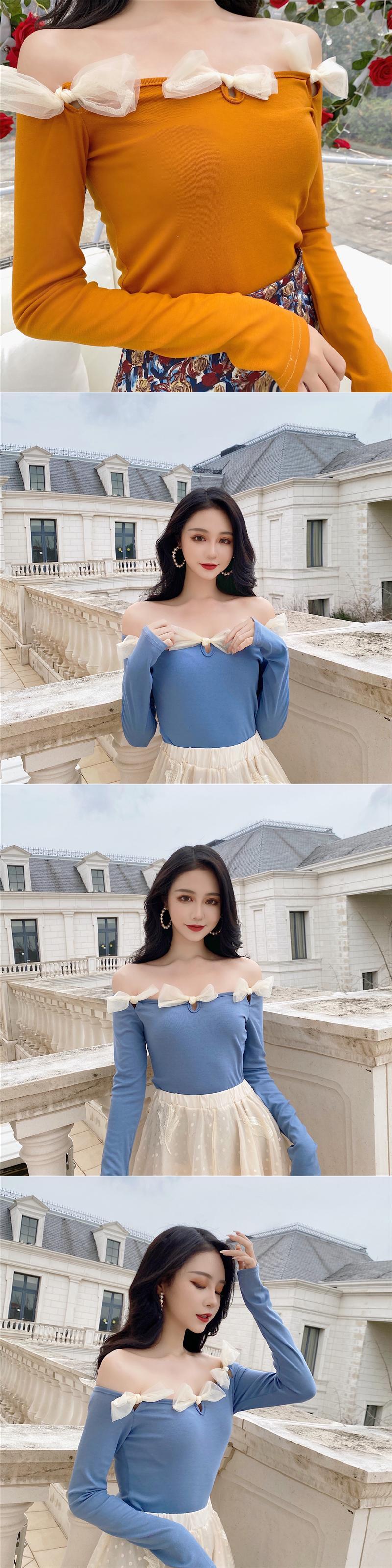 蝶結びネットガーゼワンウェイネックトップストラップレスセクシースリムTシャツオールマッチボトミングシャツ女性の2020年春バージョン YY-ファッション3838701038