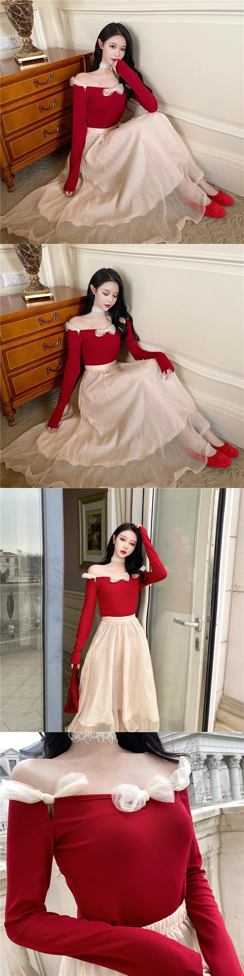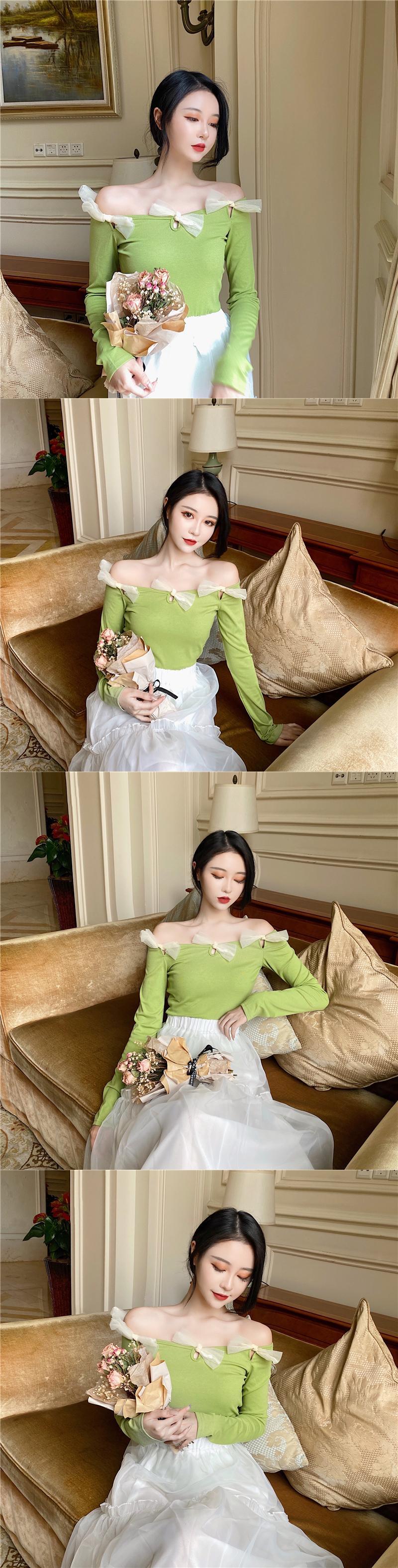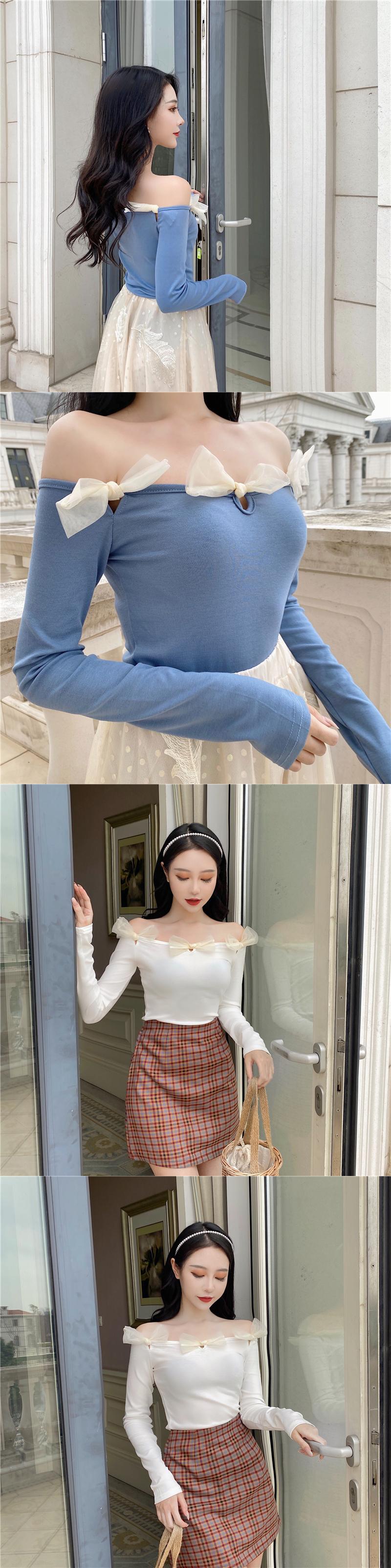 蝶結びネットガーゼワンウェイネックトップストラップレスセクシースリムTシャツオールマッチボトミングシャツ女性の2020年春バージョン YY-ファッション3838701038