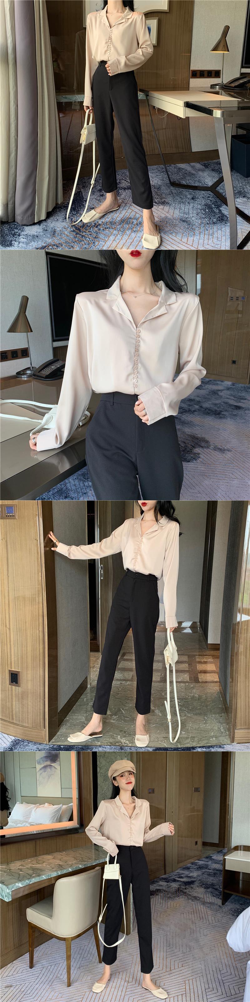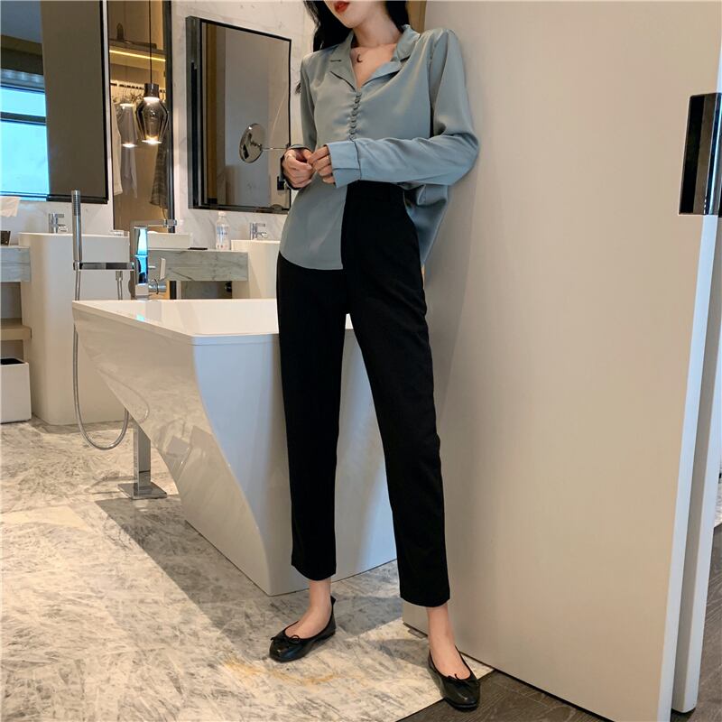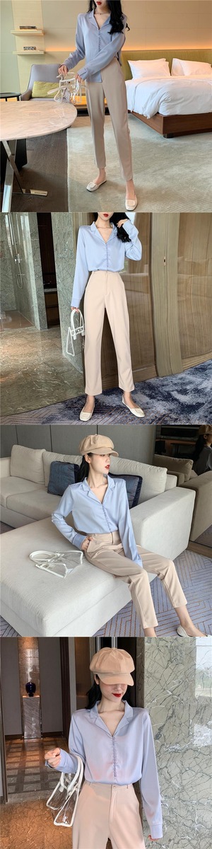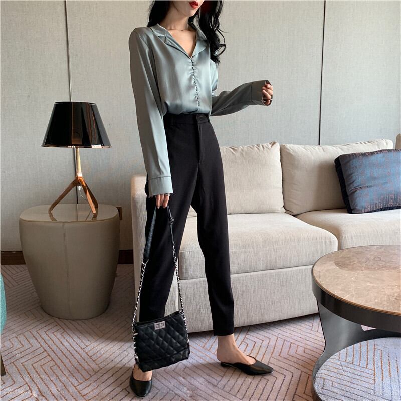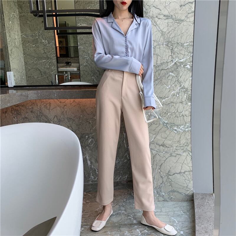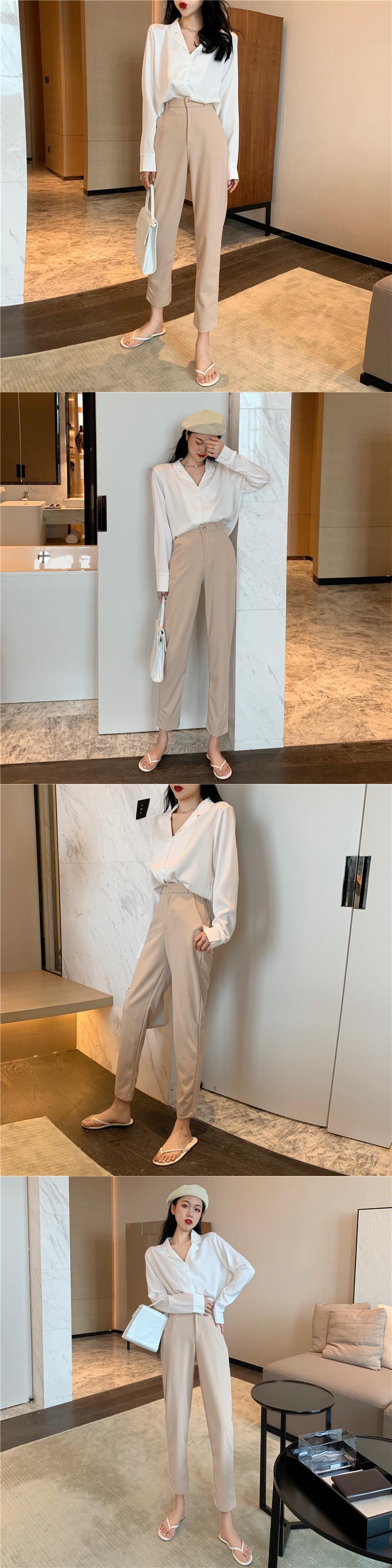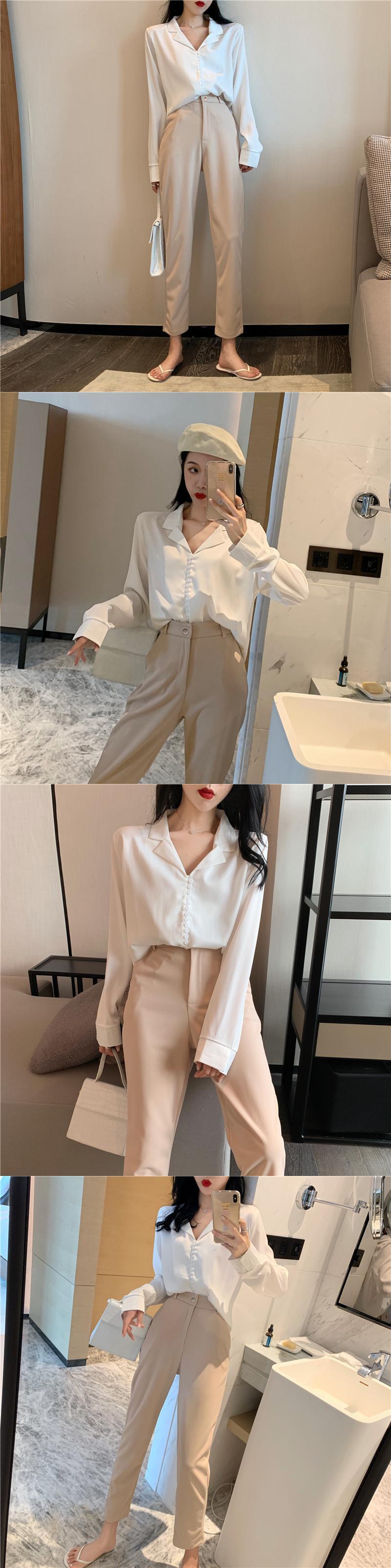 スタイルスプリングオータムカラールーズシャツ 長袖スリーブハイウェストウェストスリムカジュアルパンツ ロング 春物 秋物 YY-ファッション26380563198