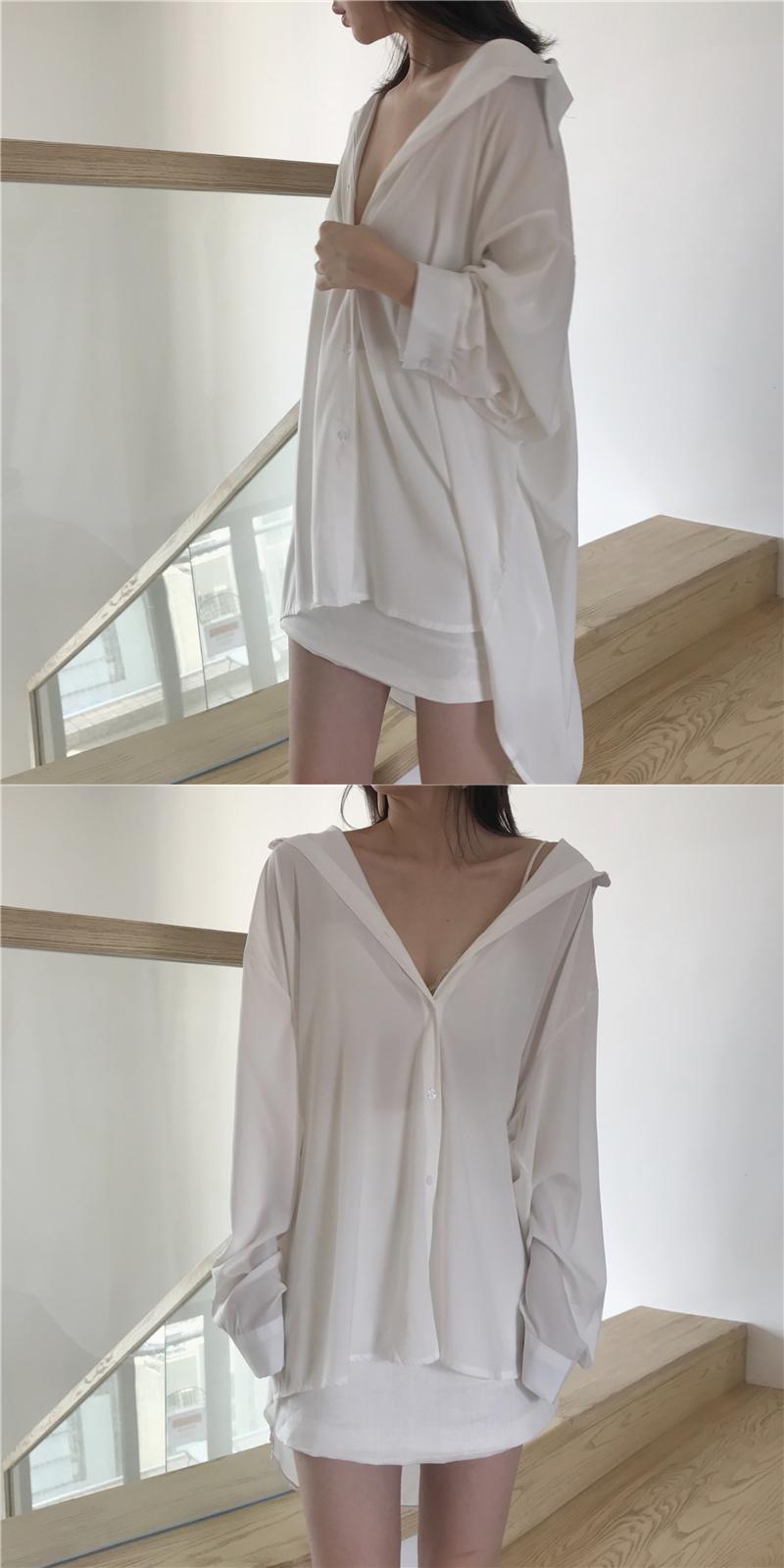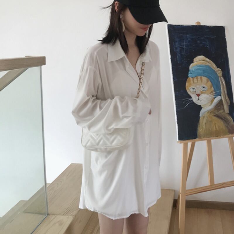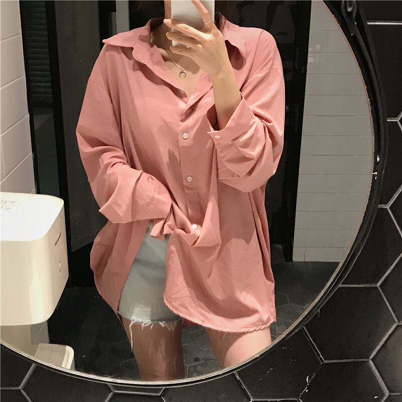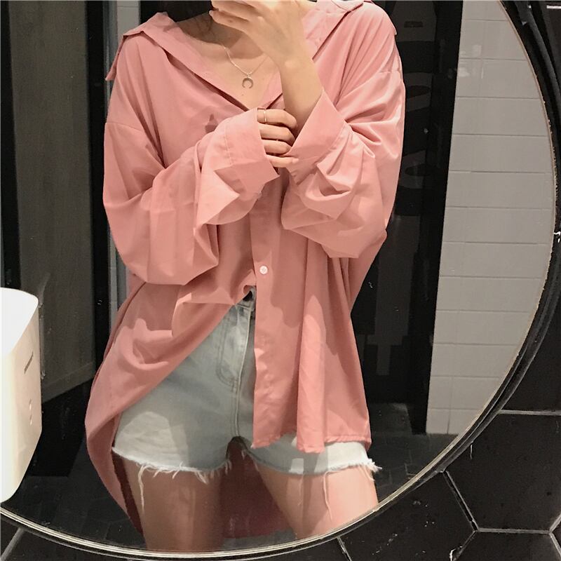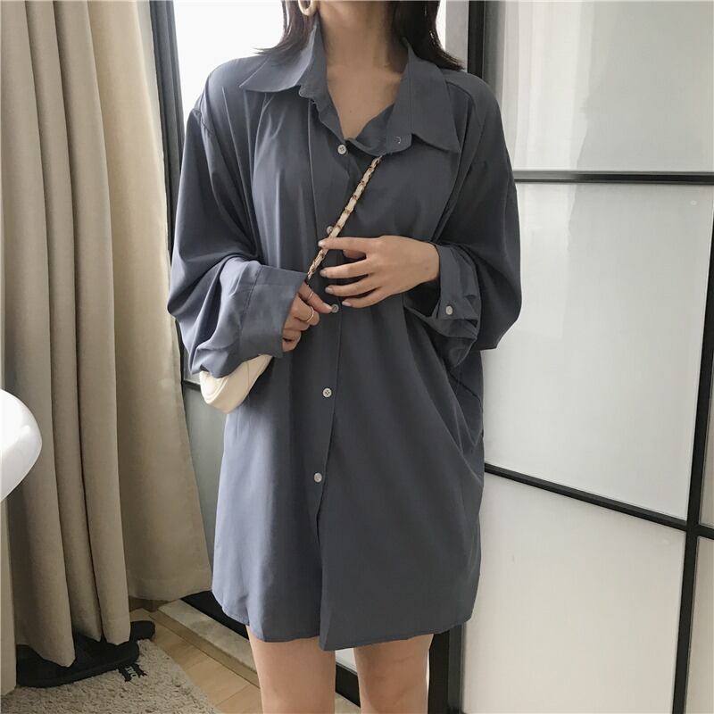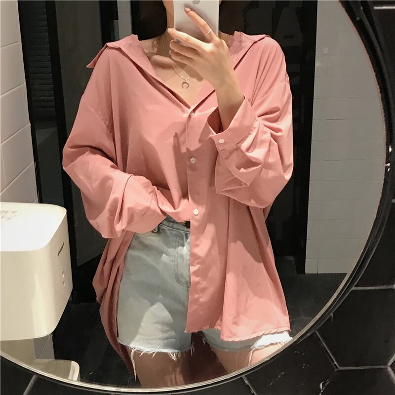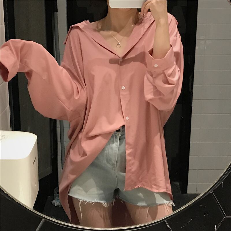 2020年初春ファッションルーズ無地ワイルドシングルブレストミドル丈長袖シャツ日焼け止めトップ女性トレンド YY-ファッション41357636130