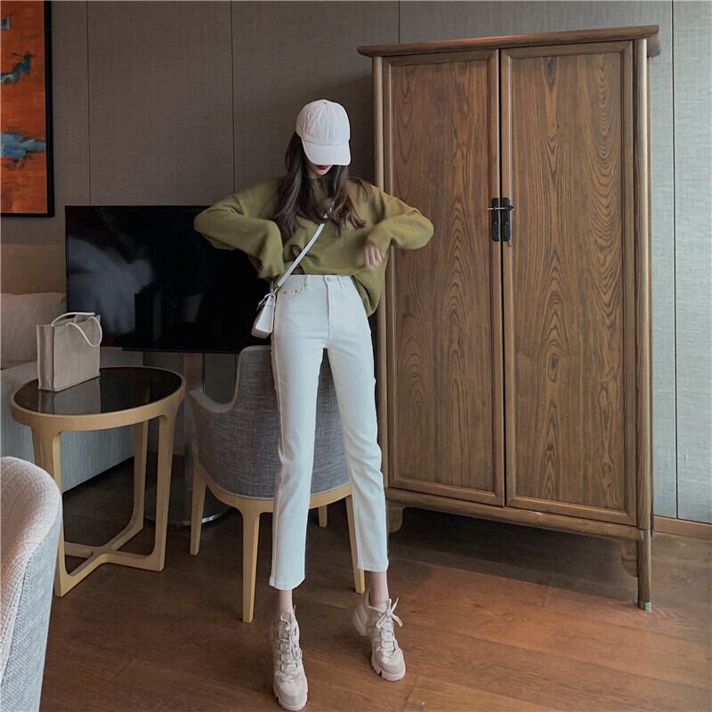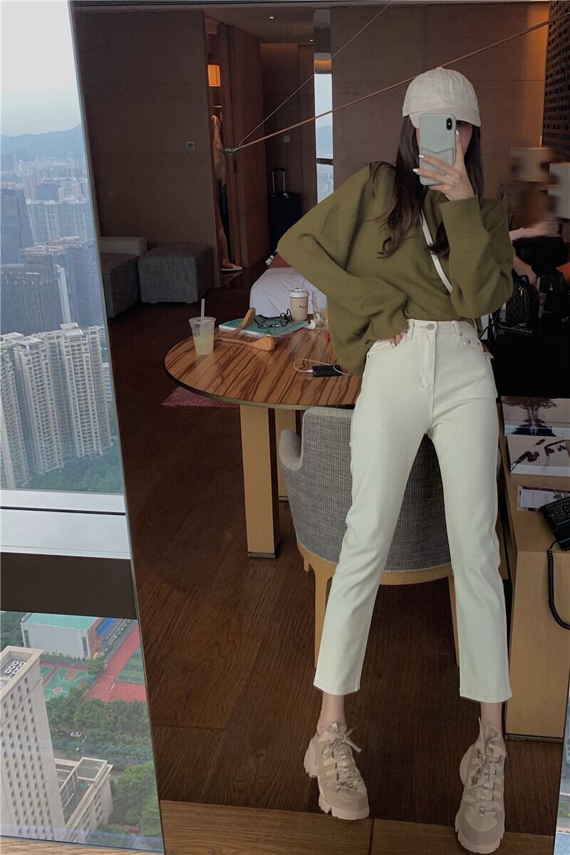 2020年夏のニュージーンズレディーススリムスリムでトールバージョンのオールマッチ9点パンツハイウエストストレートパンツトレンド YY-ファッション73318974773