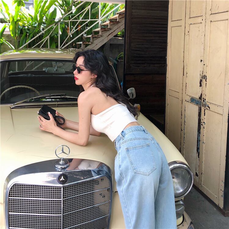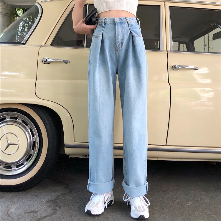 シックなオールドジーンズの2020年夏バージョンルーズBFワイドレッグパンツカジュアルパンツ+新しい白いVネックアウター YY-ファッション10642439302