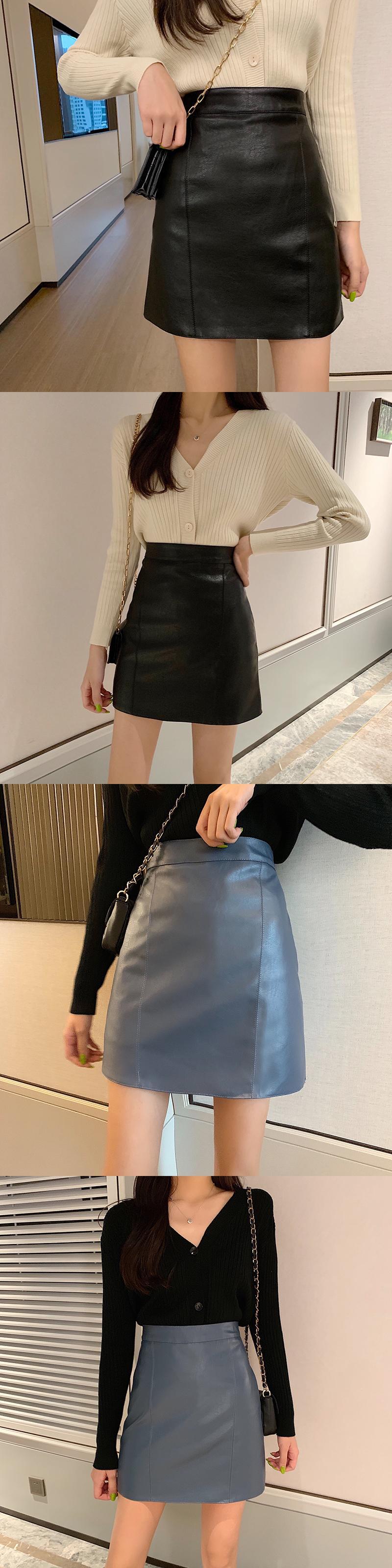 スプリングスタイルレザースカート Aラインハイウェストウェストショート かわいい 春物 YY-ファッション19815831323