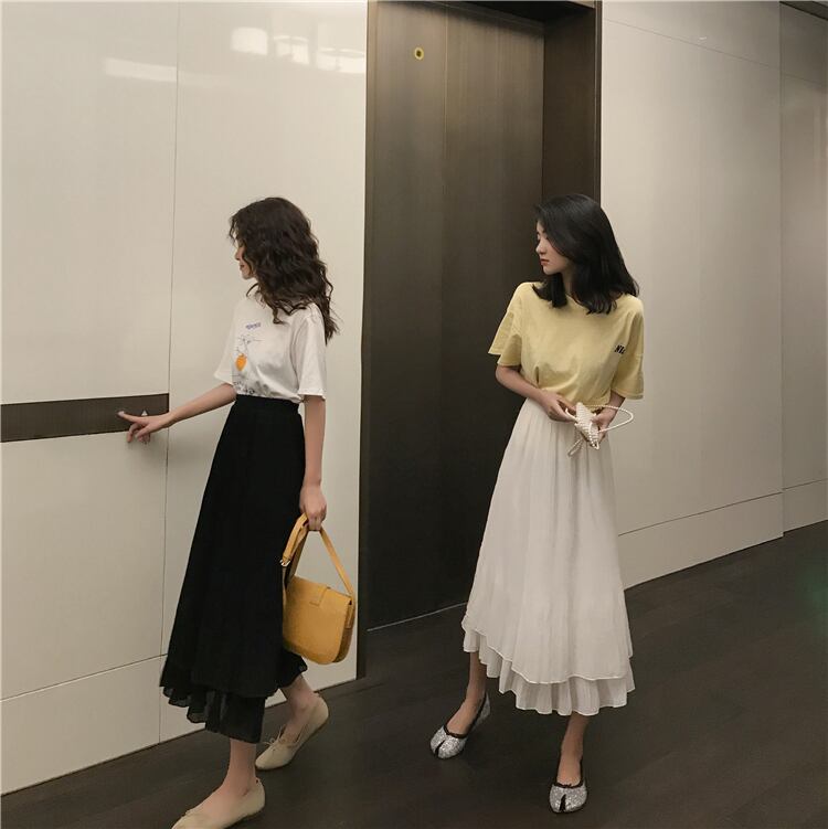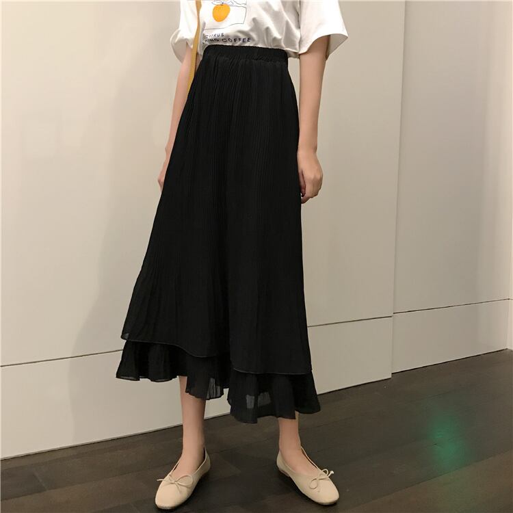 サマースカート ハイウェストウェストプリーツルーズAライン 夏物 YY-ファッション86645837606