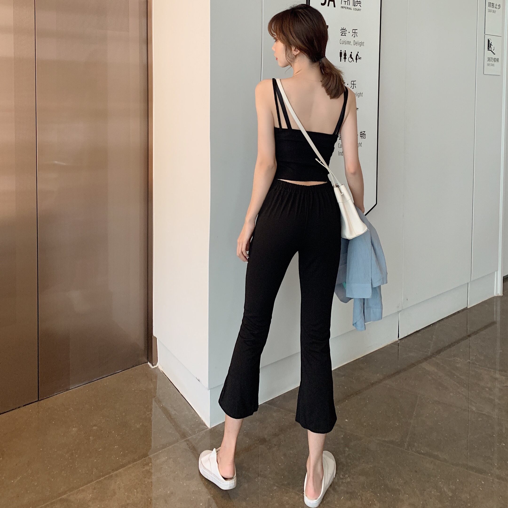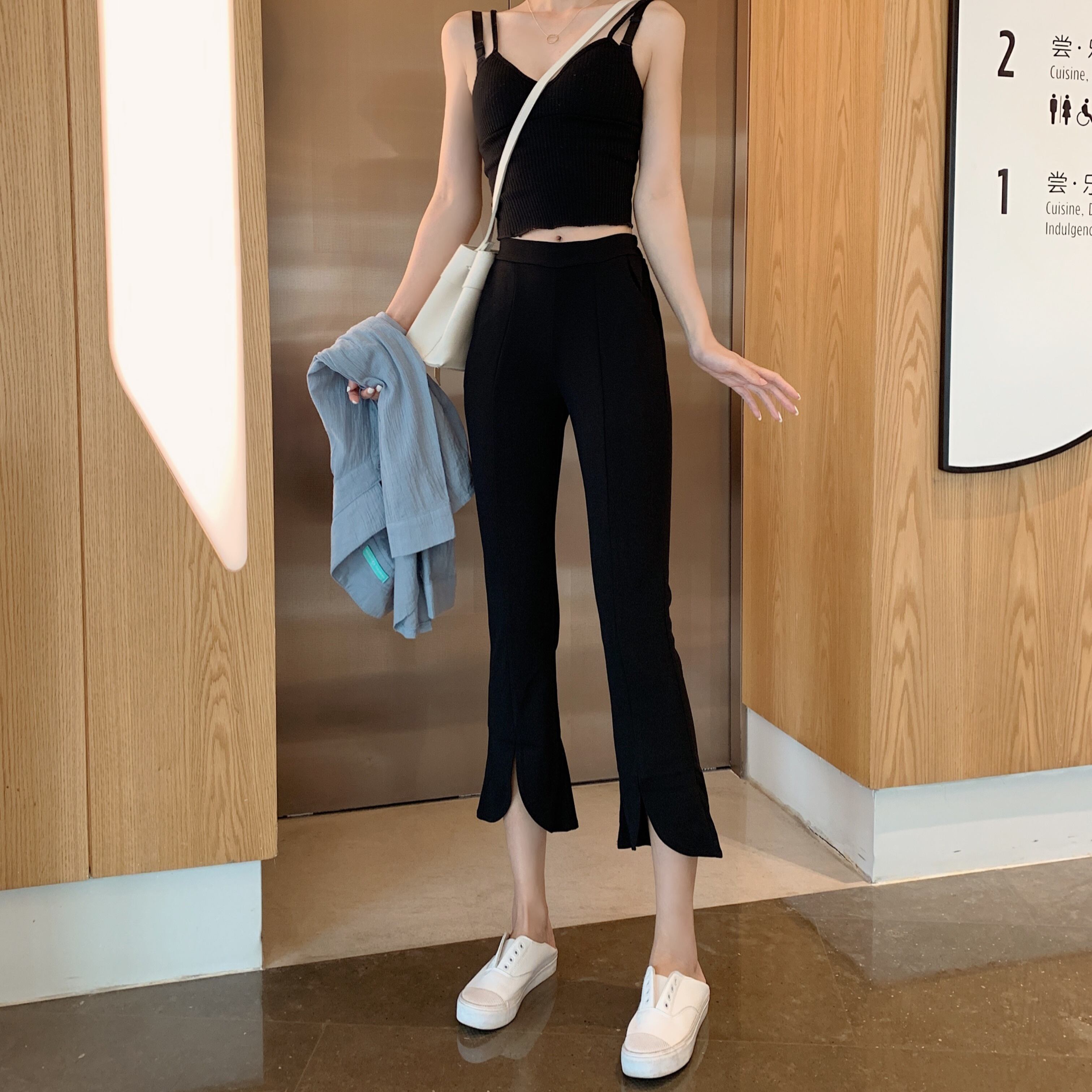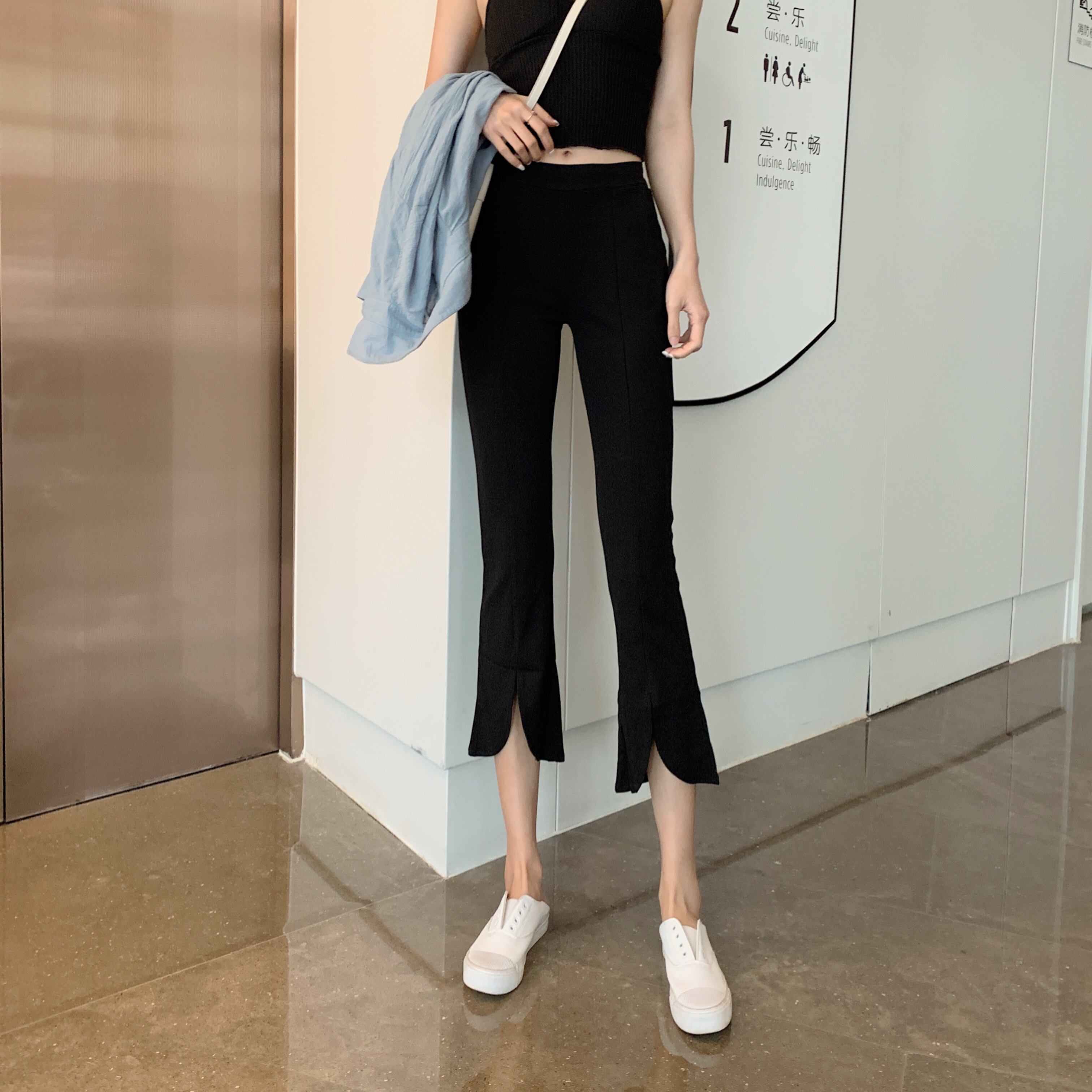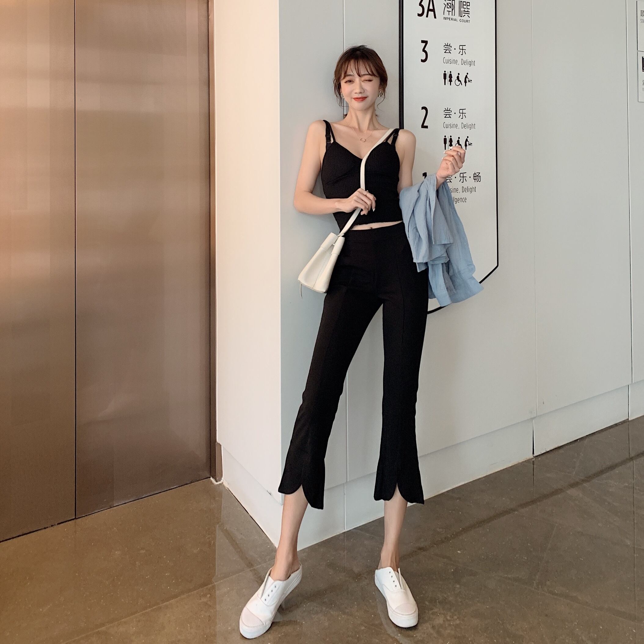 2020年春夏新作気質スリムマイクロフレアパンツスリムブラックパンツミッドウエストクロップドパンツ YY-ファッション55490868163