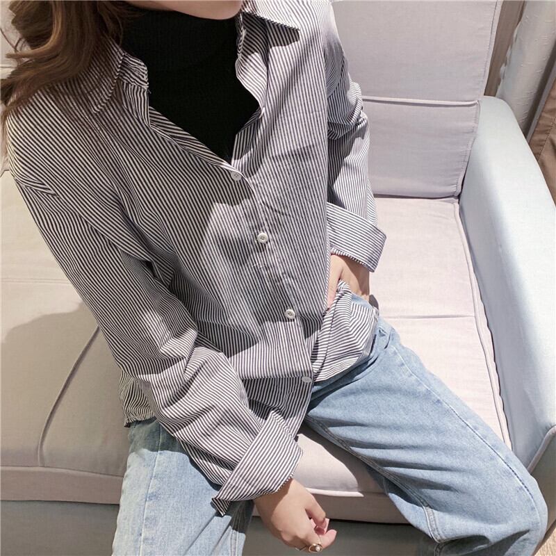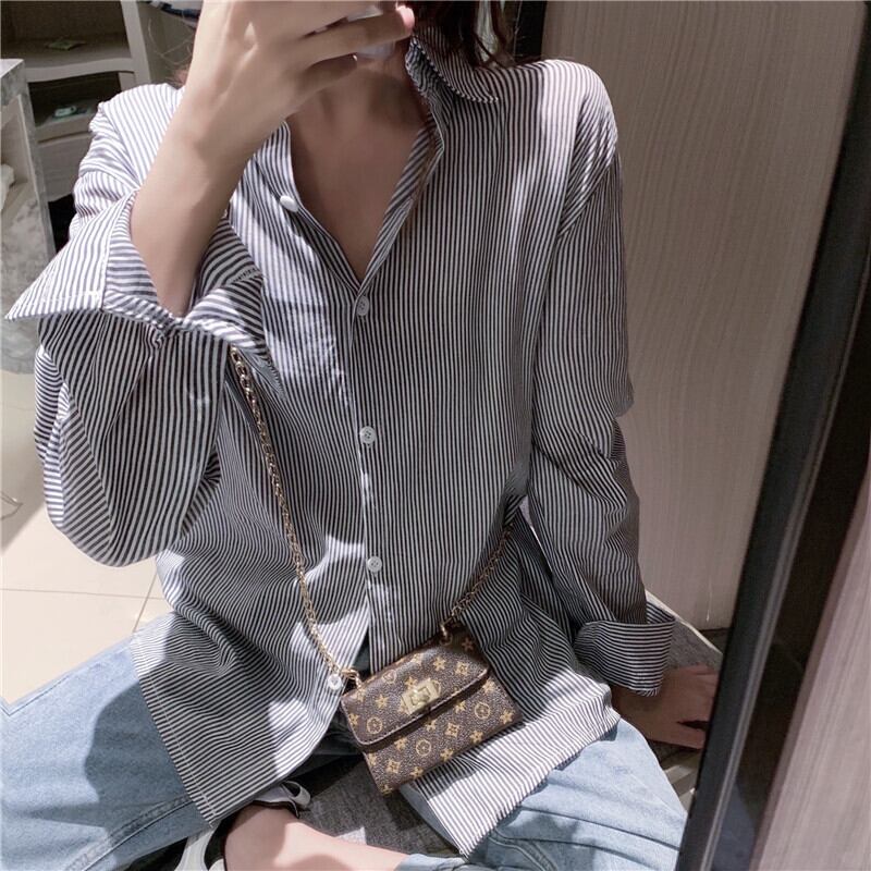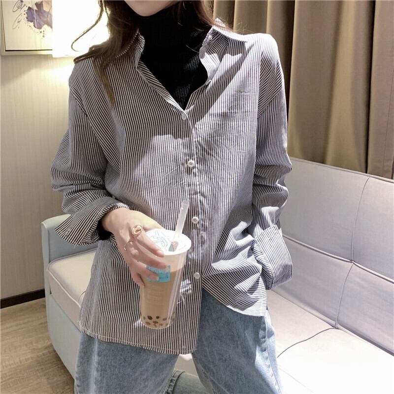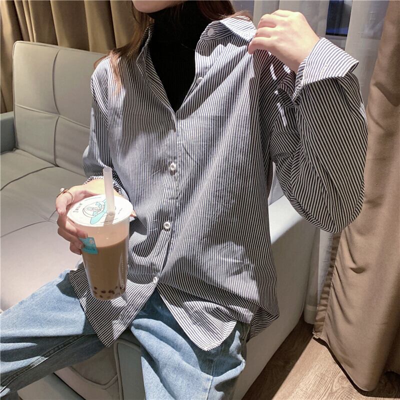 ブルーストライプシャツ女性デザインセンスニッチ長袖シャツ女性2020新しいルーズトップコート女性夏 YY-ファッション48770821881