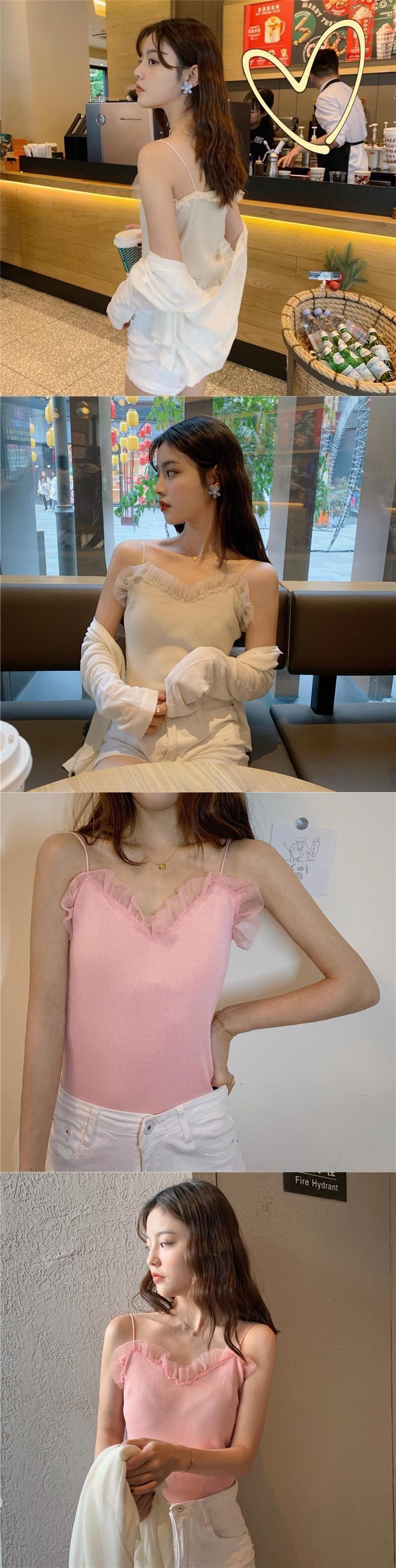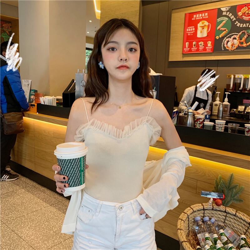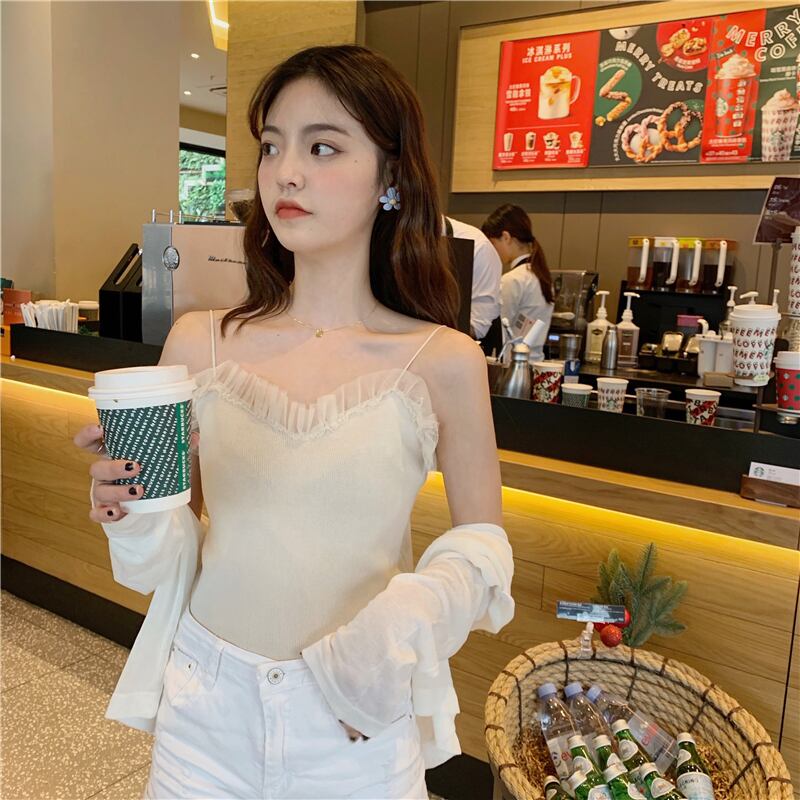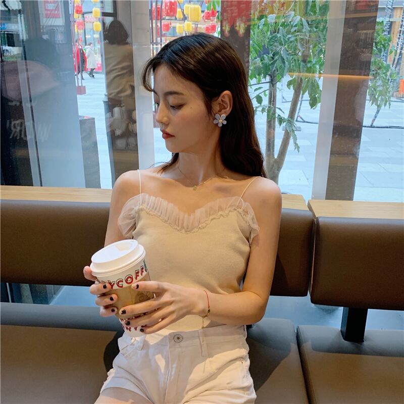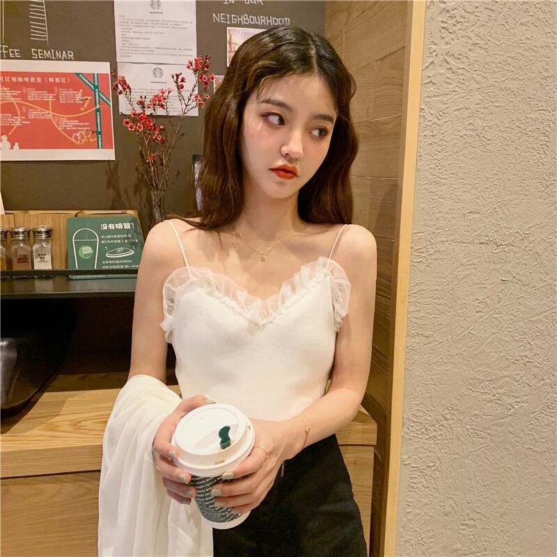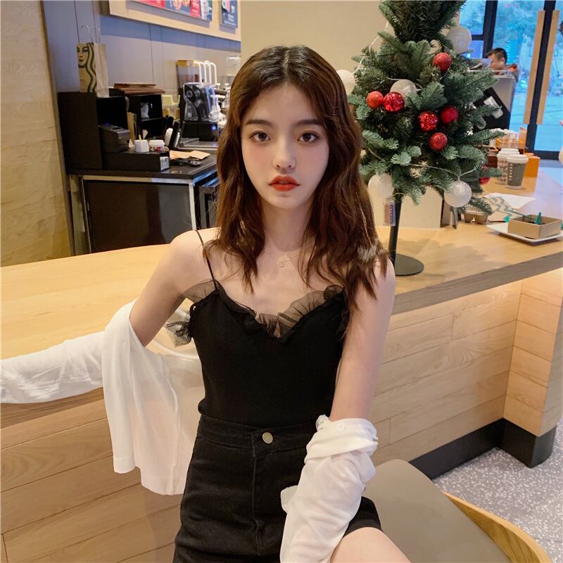 2020年夏の新しいスリムスリムセクシー露出鎖骨レースステッチスリムスリム女性キャミソール付き YY-ファッション32484195913