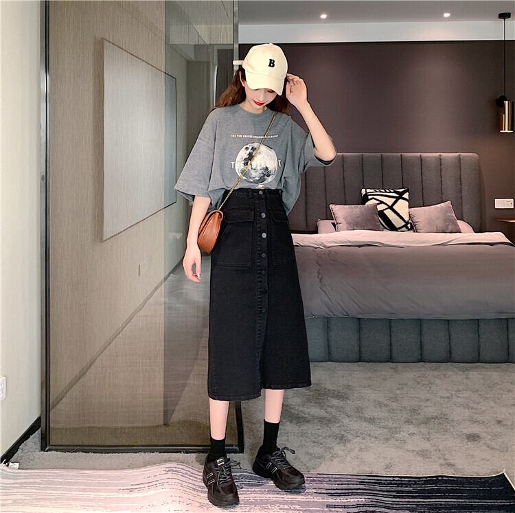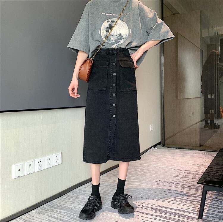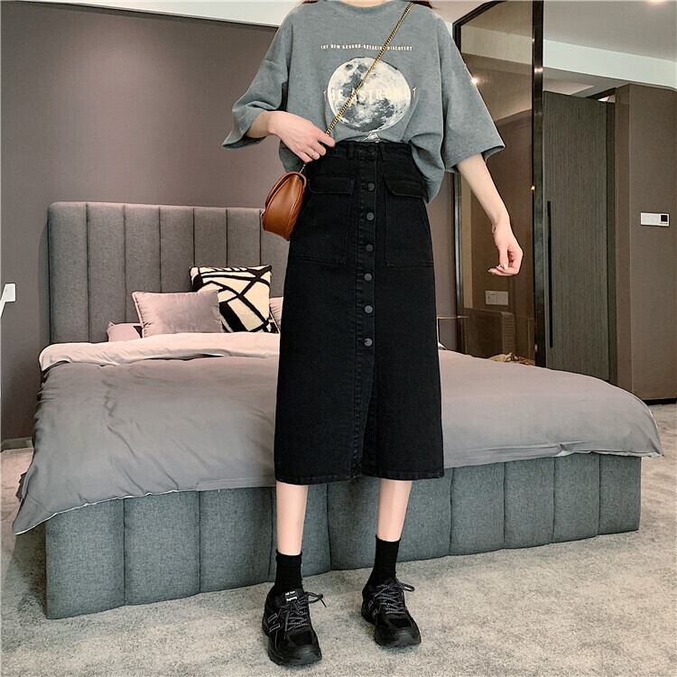 2020年春夏新入生香港フレーバールーズで薄いレトロシックなハイウエストミドル丈デニムスカート YY-ファッション91099289850