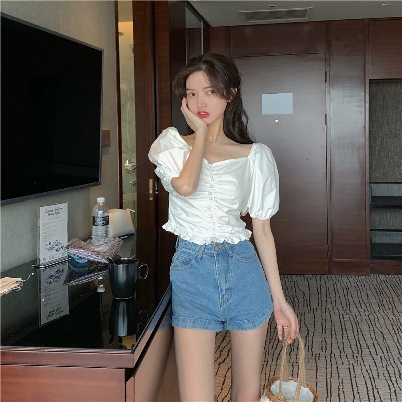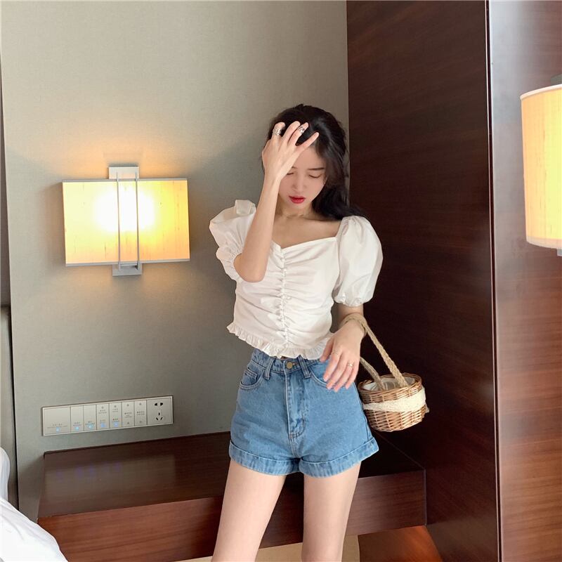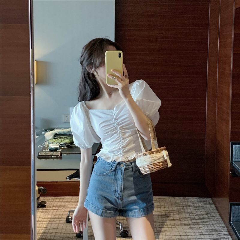 2020年初春新作女性デザインセンスニッチパレスVネック半袖シャツシャツシフォンショートホワイトシャツ YY-ファッション86099777916