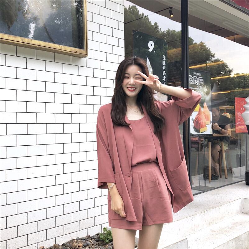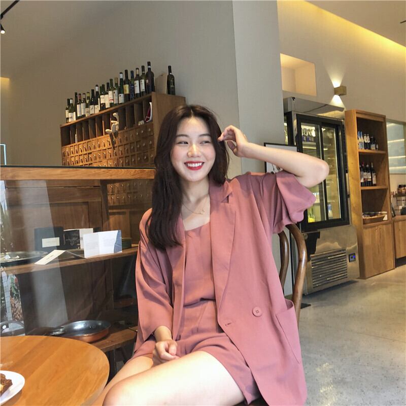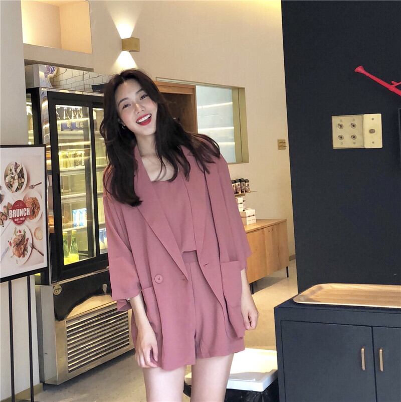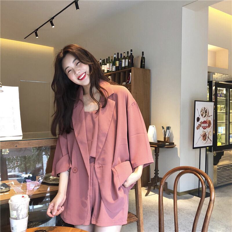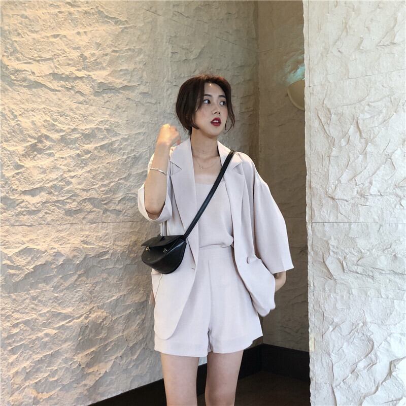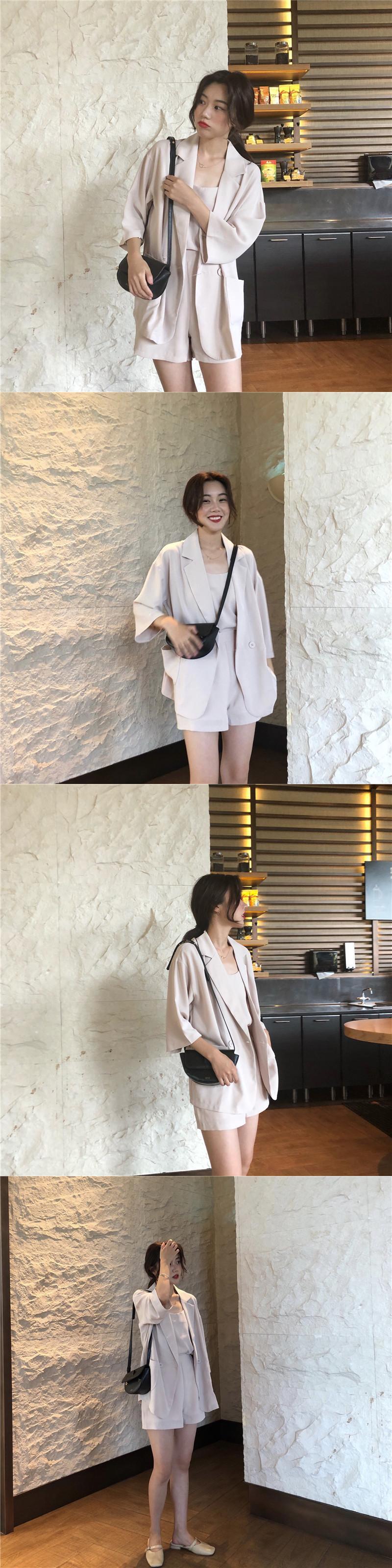 スーツウィメンズ2020夏オールマッチルーズスーツジャケット+サスペンダートップ+ワイドレッグショーツスリーピーストレンド YY-ファッション33103921978