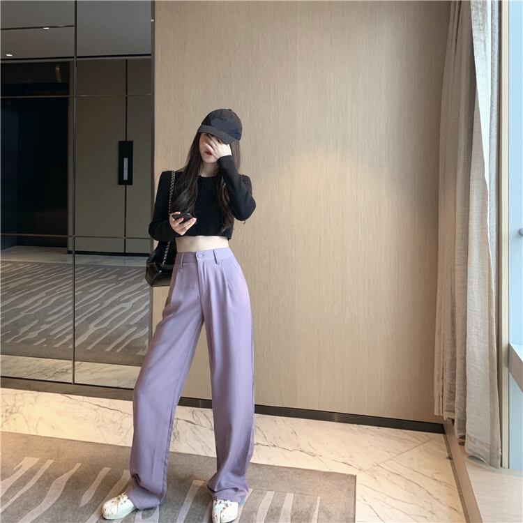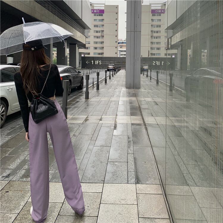 レトロなニットのショートカーディガン+優しいスモーキーグレーパープルのドレープとフロアパンツ、夏の新しいファッションスーツの女性 YY-ファッション27486857517