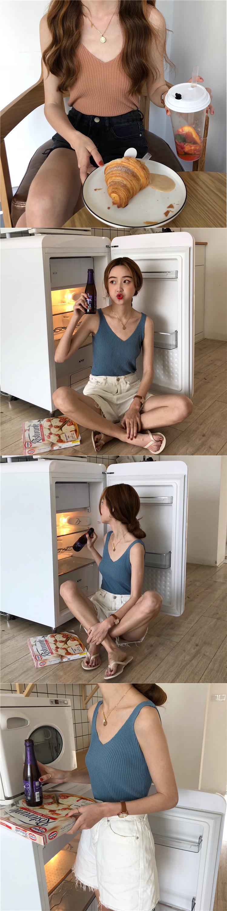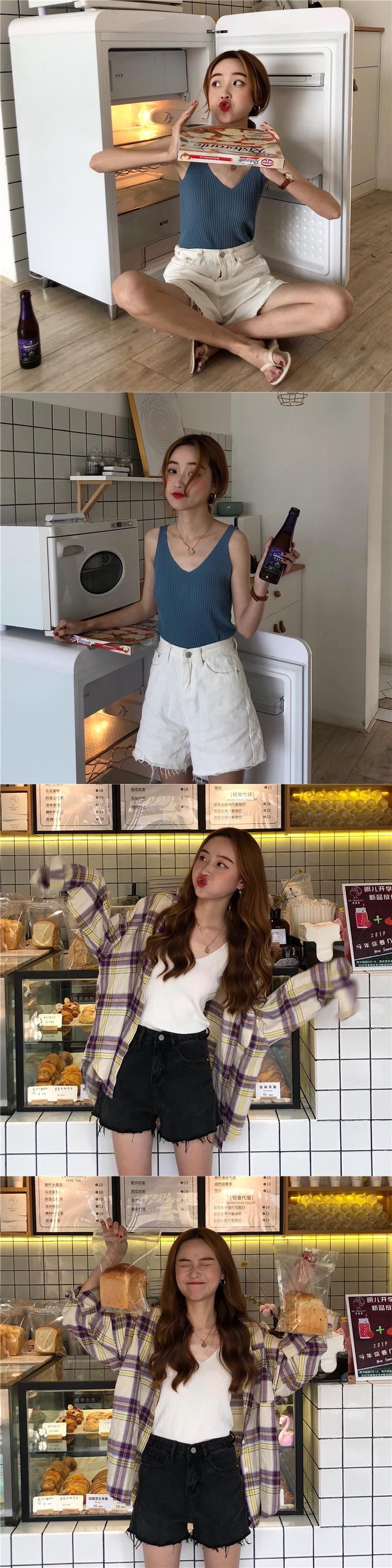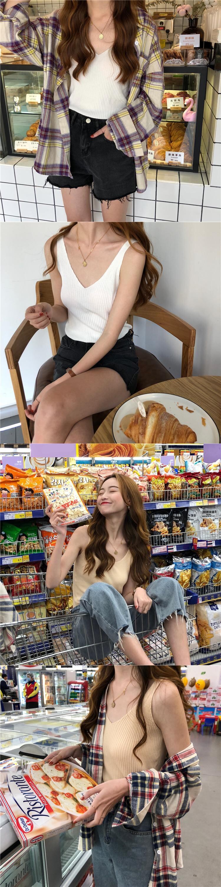 夏のレトロなVネックスリムフィットの小さなサスペンダーセーターの女性の無地のシンプルなボトミングシャツ、ベストトップ YY-ファッション59492366635